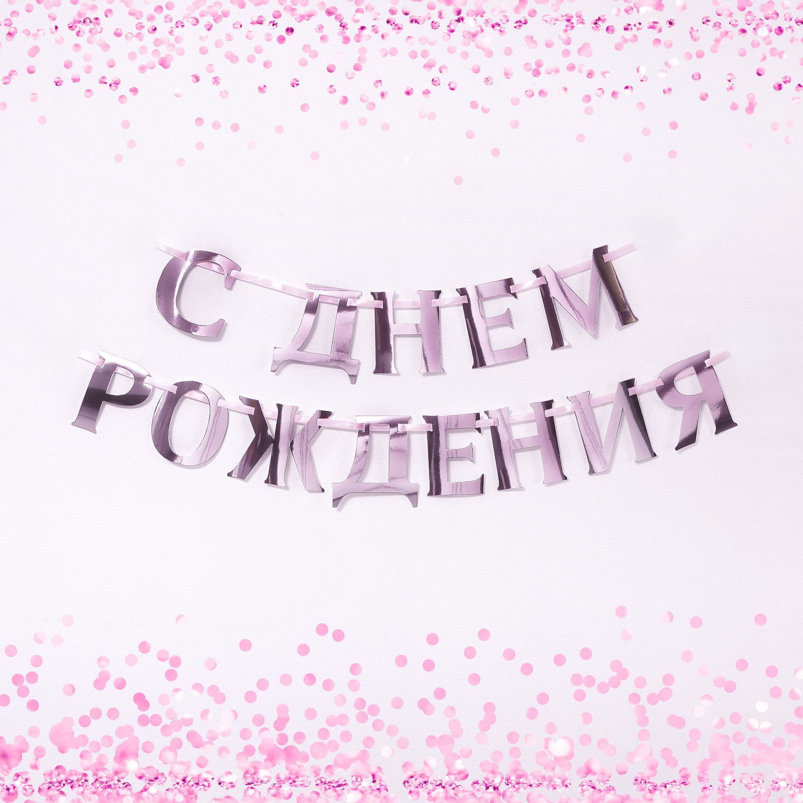 Гирлянда на ленте, металлик "С ДР" розовый, длина 140 см, 0.5x18x17.5 см., Страна Карнавалия, Китай