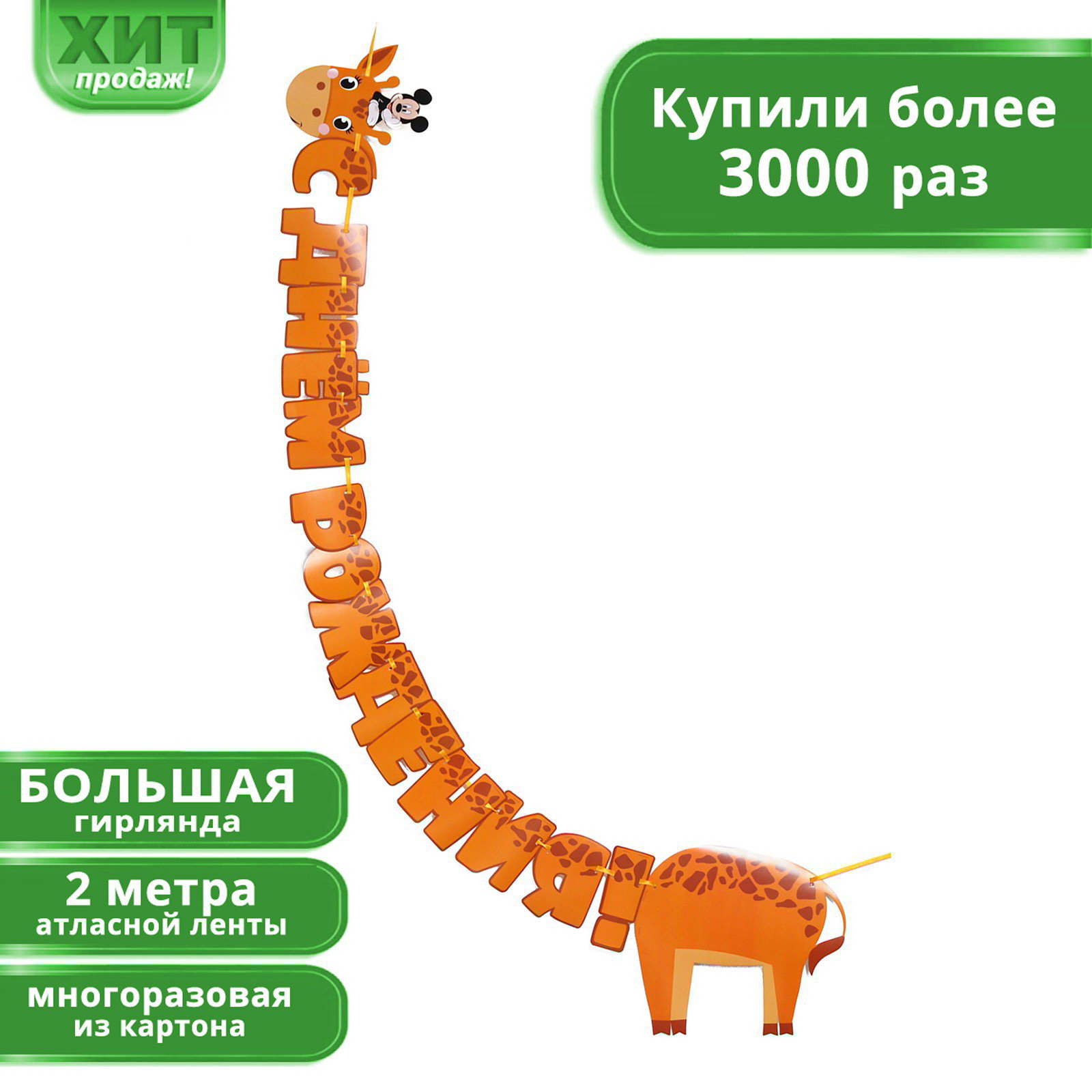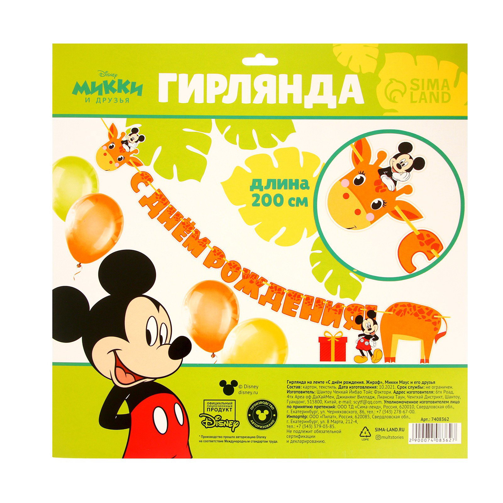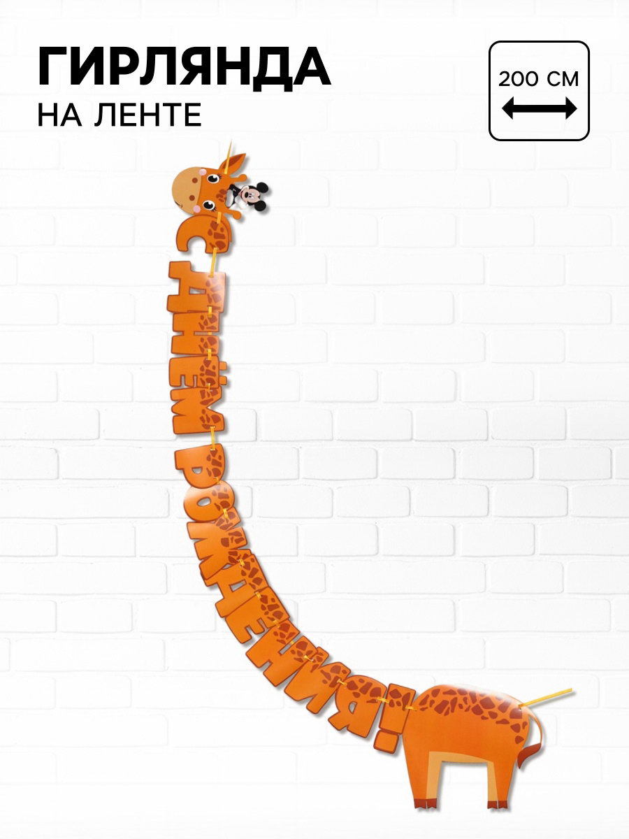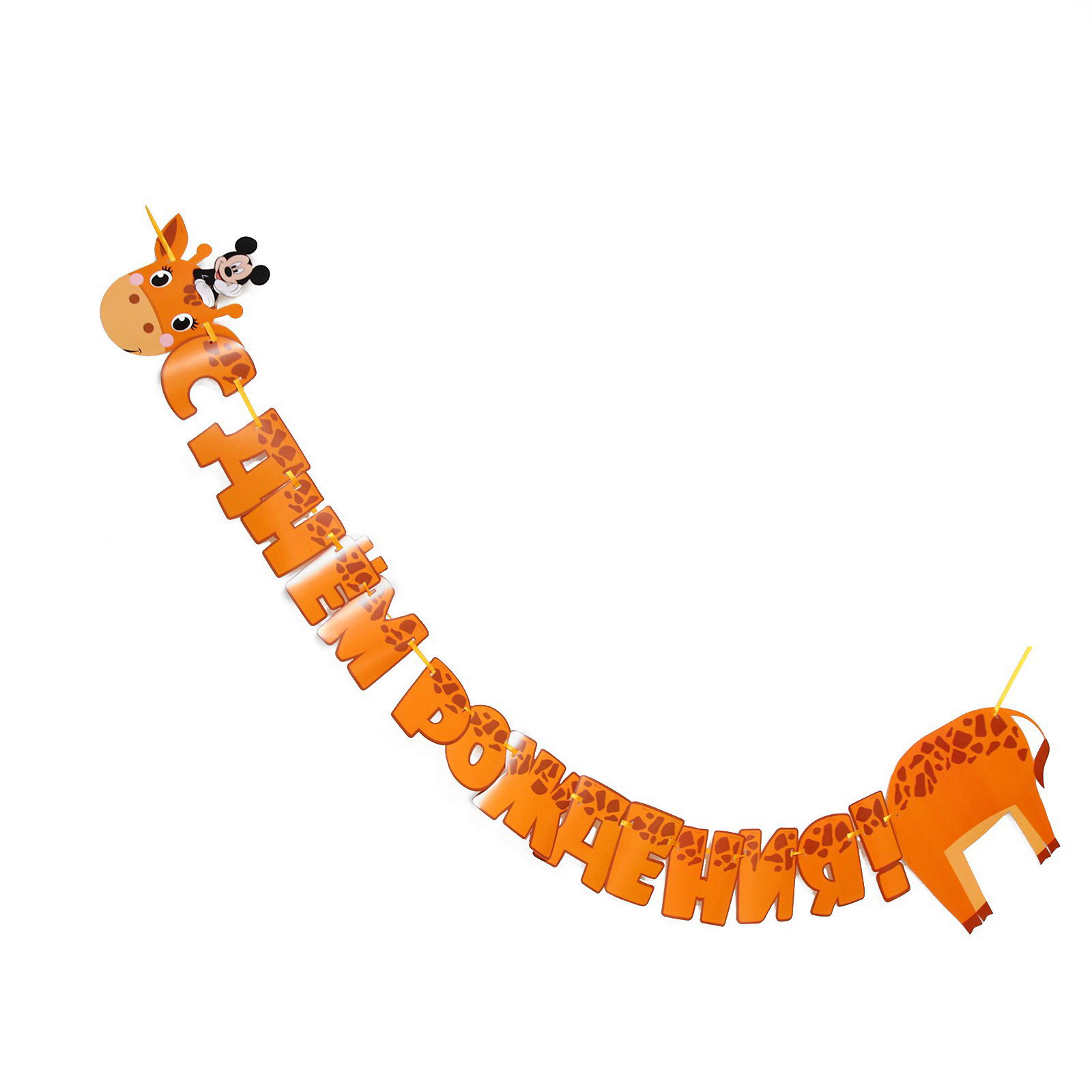 Гирлянда на ленте "С днем рождения", длина 2 м, Микки Маус и его друзья, 0.5x30x30 см., Disney, Китай