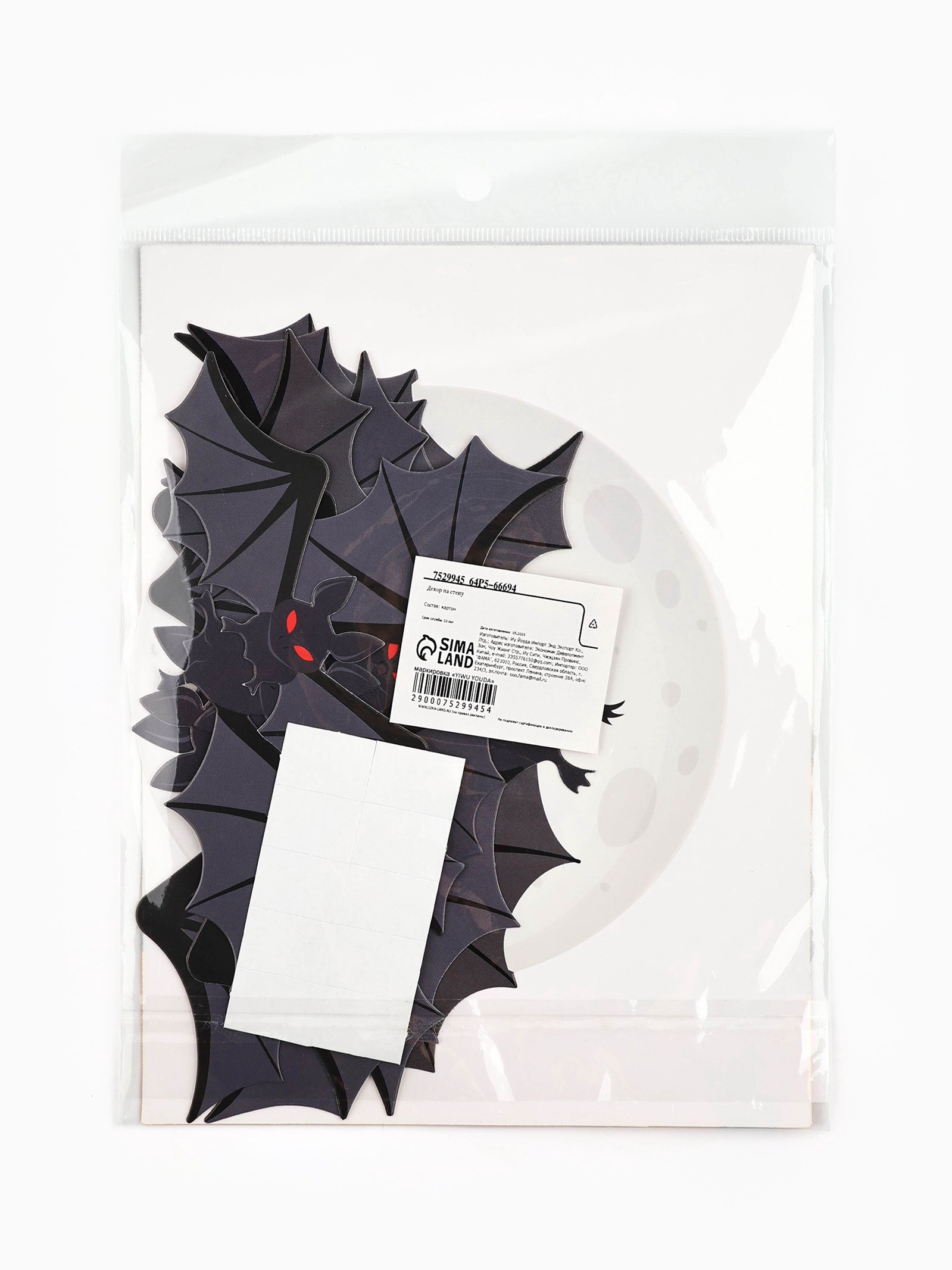 Декор на стену "Настоящая ночь страха и ужаса", летучие мыши, набор 10 шт., 0.3x16x21 см., Страна Карнавалия, Китай