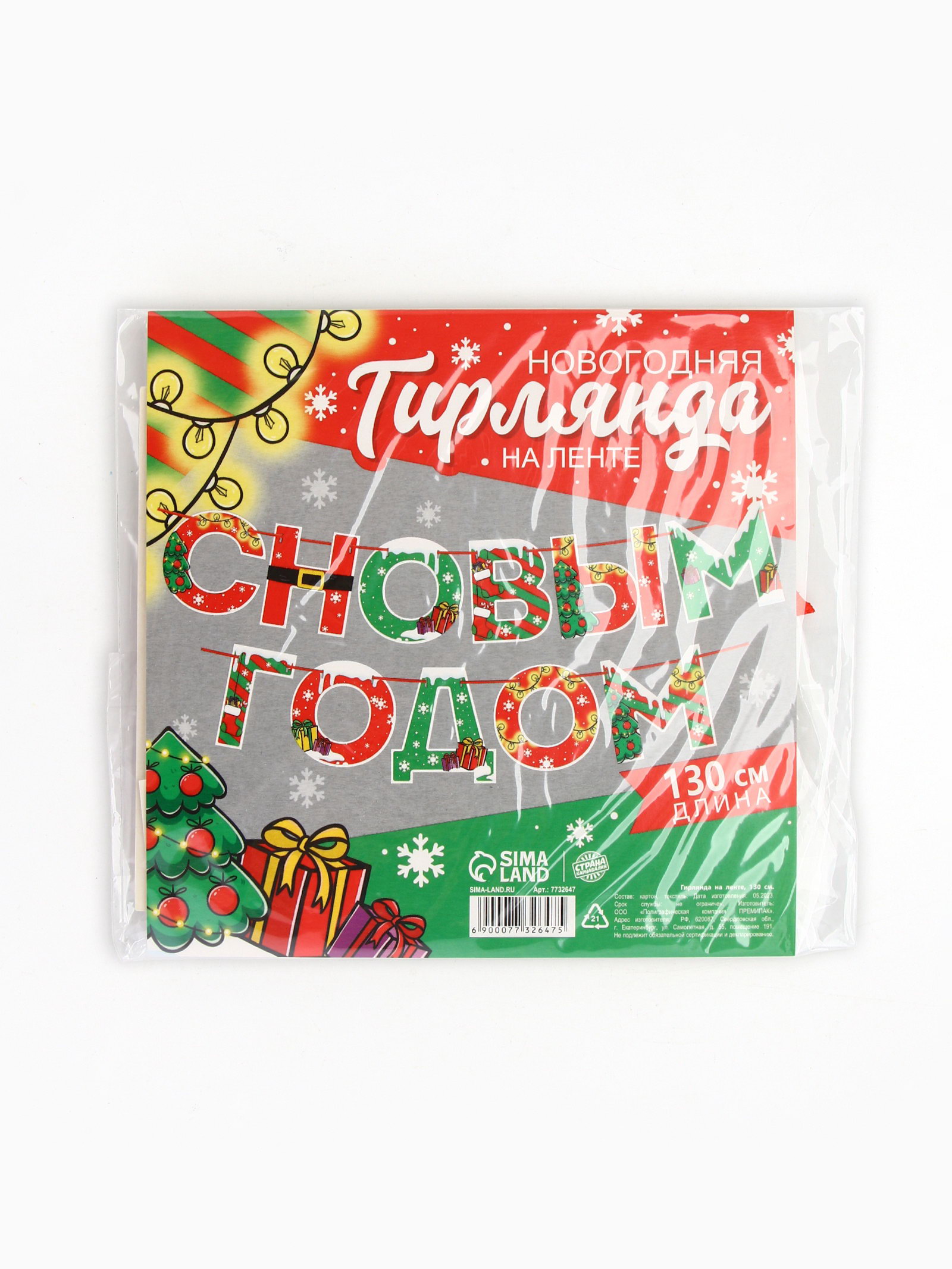 Гирлянда на ленте новогодняя "С Новым годом!", на Новый год, яркая, длина 1.3 м., 16x16x1 см., Страна Карнавалия, Россия