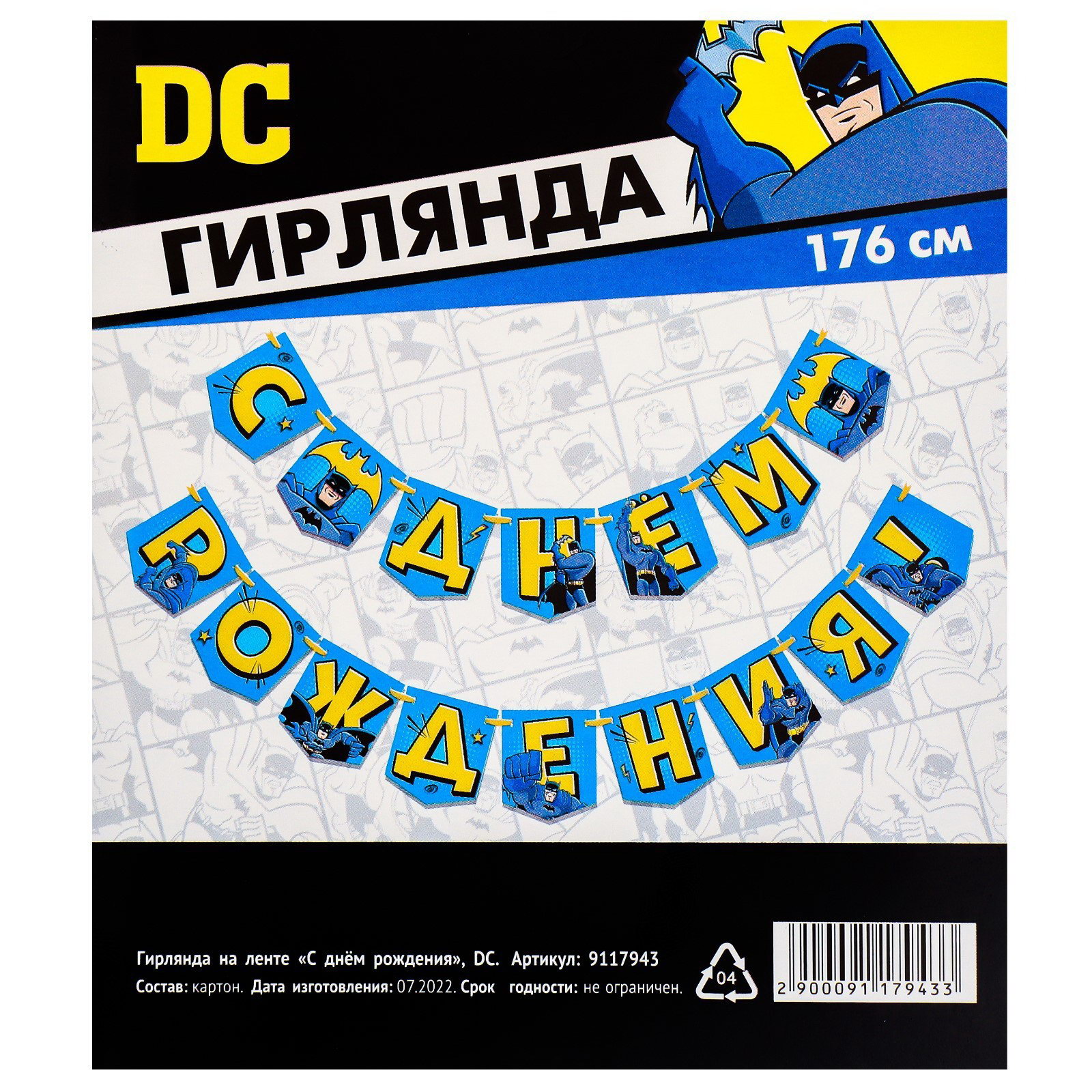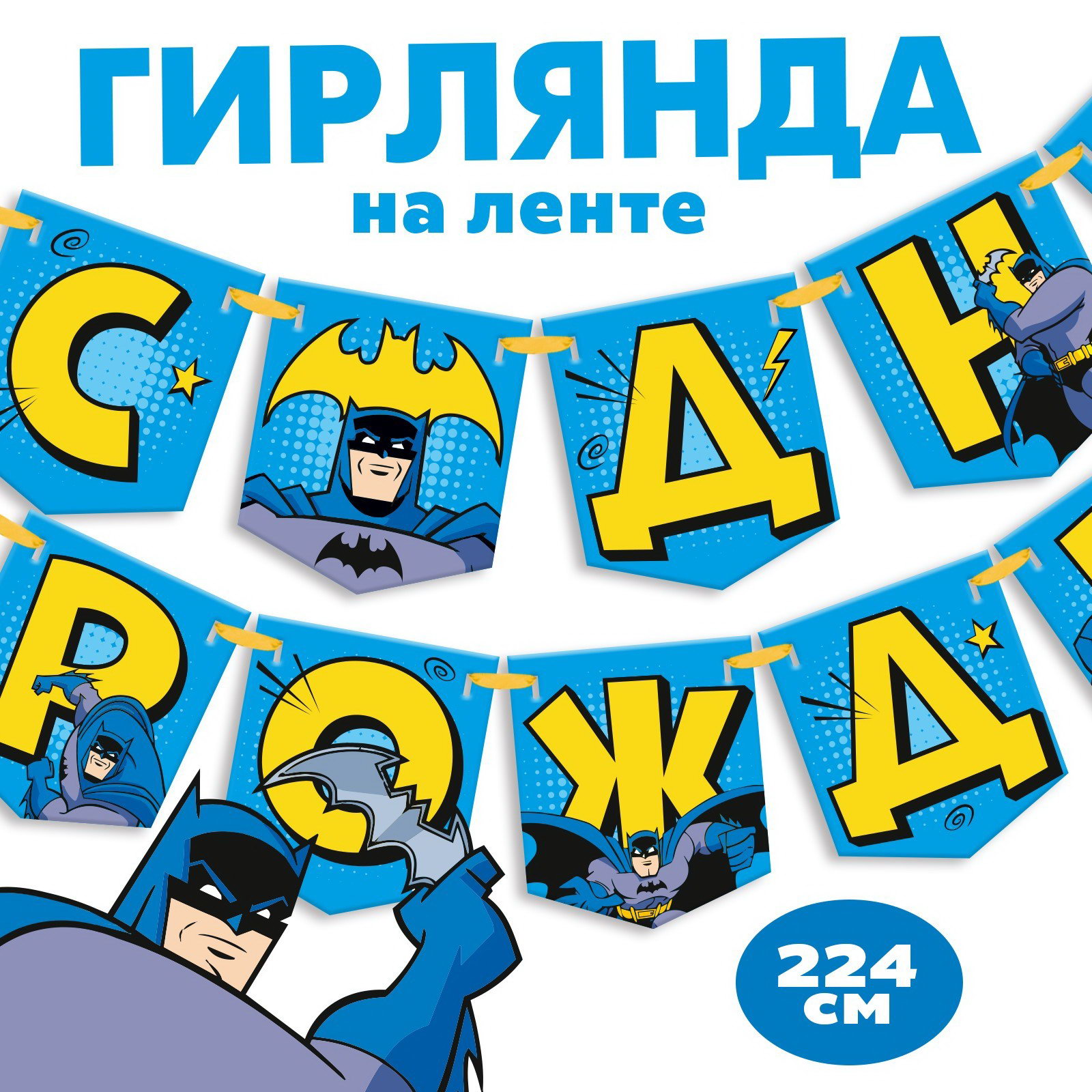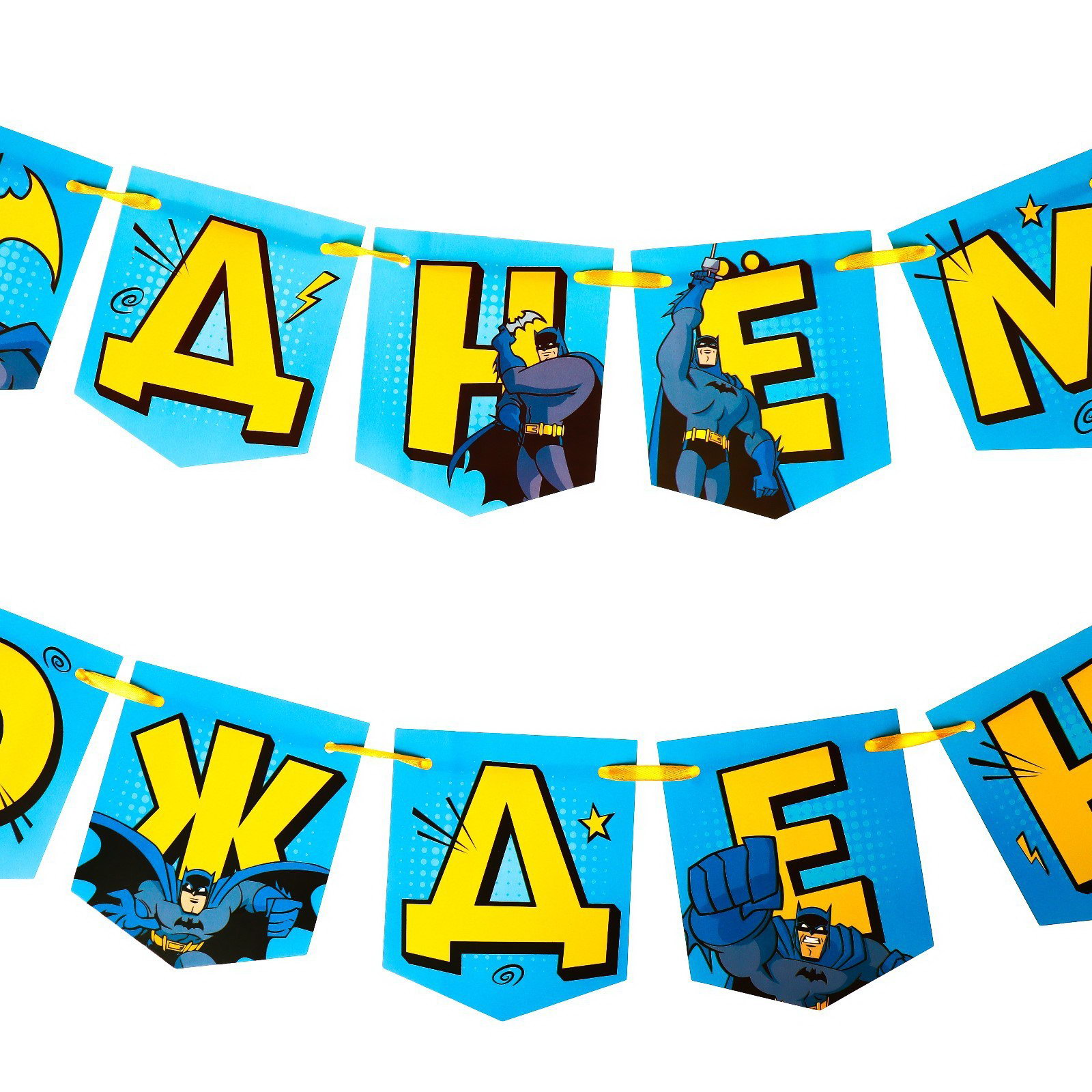 Гирлянда на ленте "С днем рождения", длина 176 см, Бэтмен, 0.5x14x14 см., Страна Карнавалия, Россия