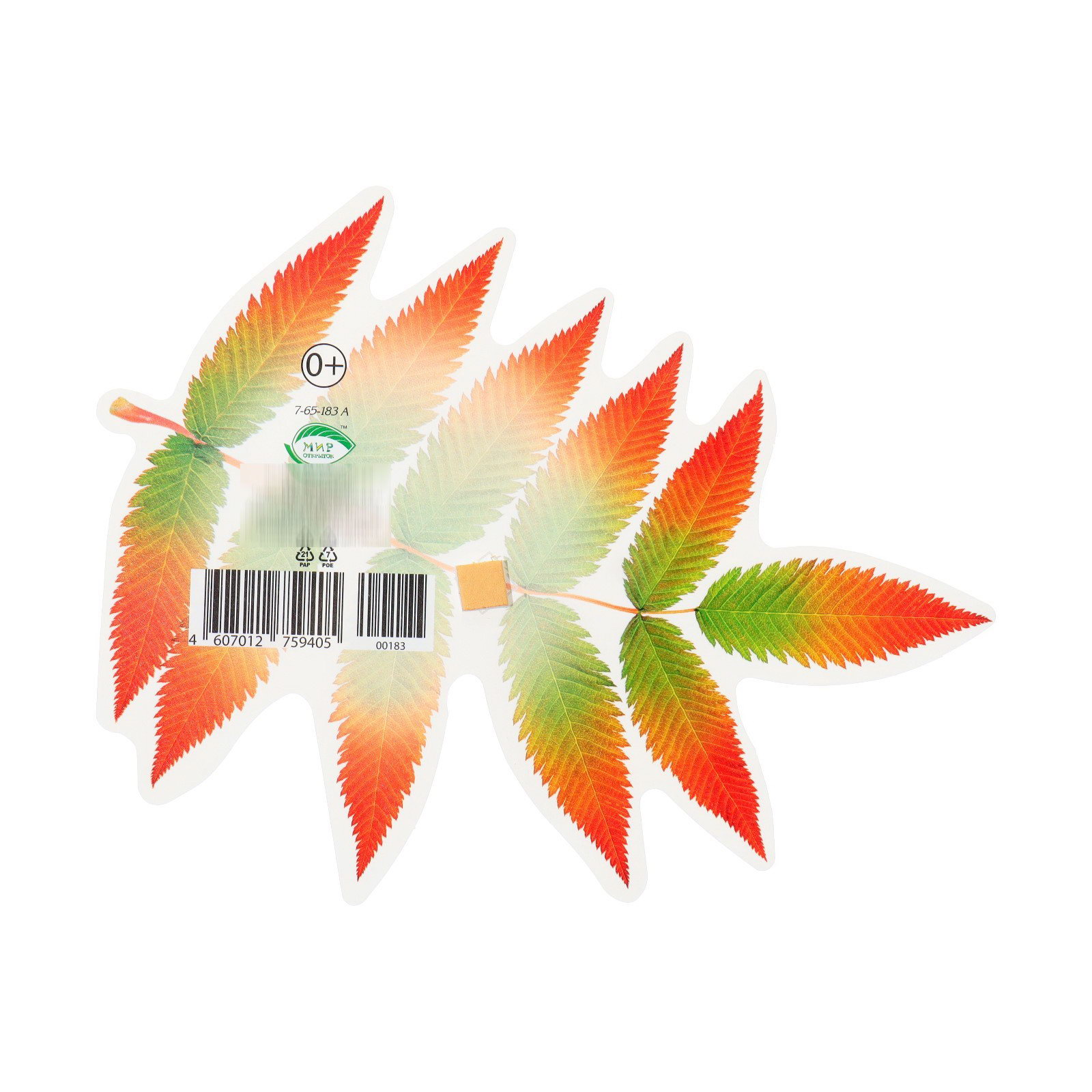 Украшение на скотче "Лист рябины" красный, зелёный, 18x18 см, Мир открыток, Россия