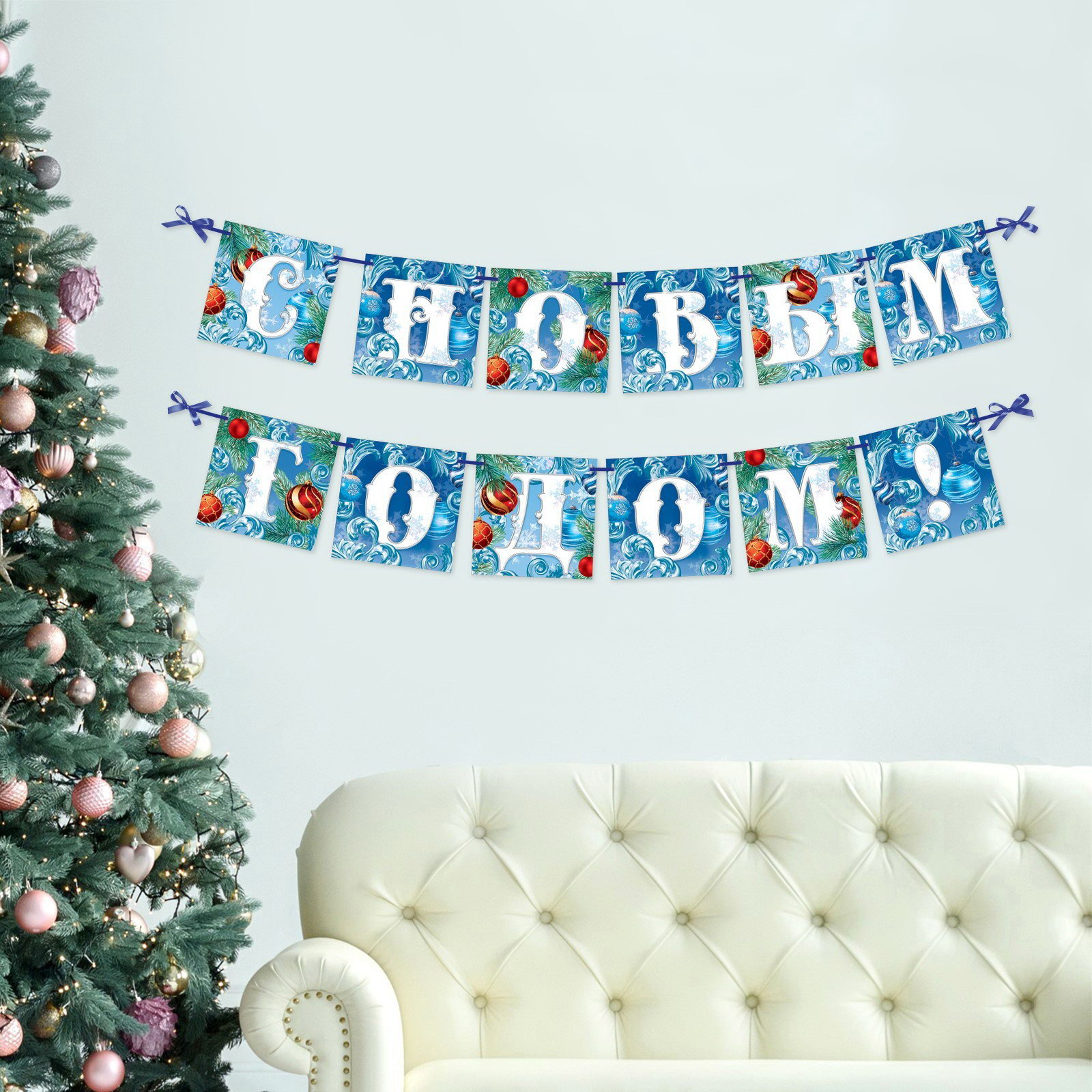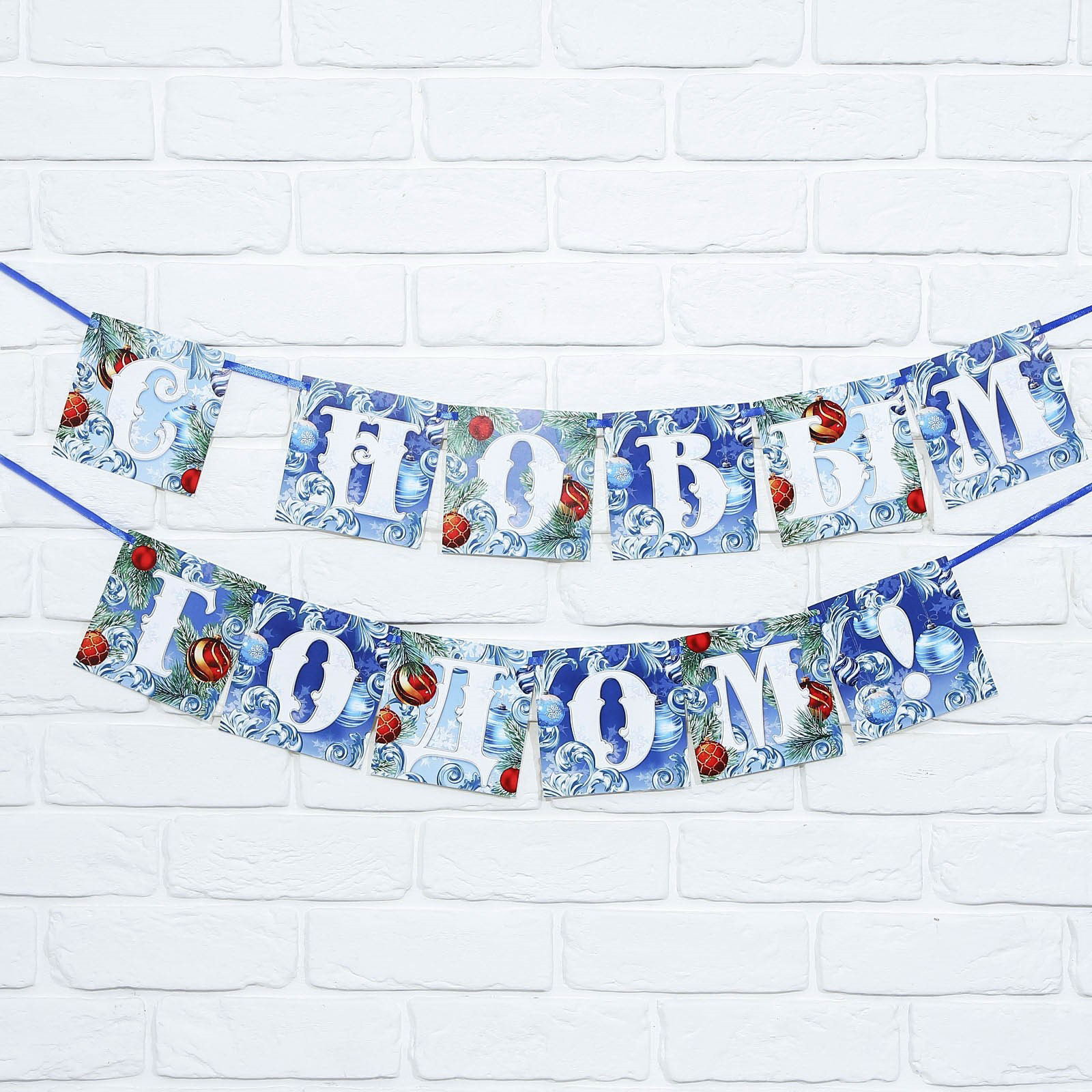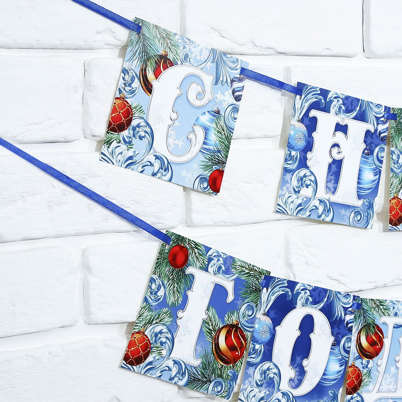 Гирлянда на ленте новогодняя "С Новым годом!", на Новый год, иней, длина 2 м., Страна Карнавалия, Россия