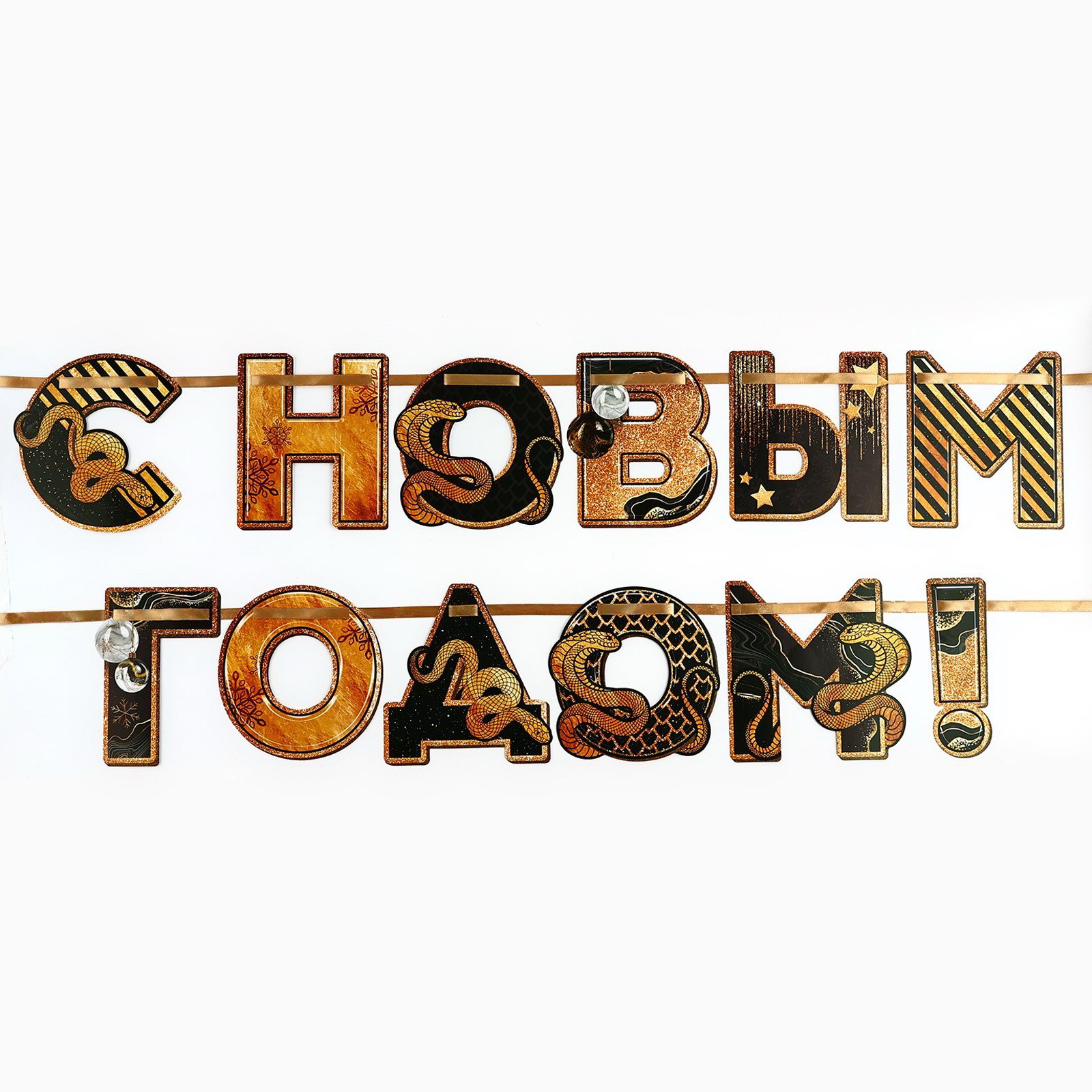 Гирлянда на ленте новогодняя "С Новым годом", длина 150 см, Страна Карнавалия, Китай