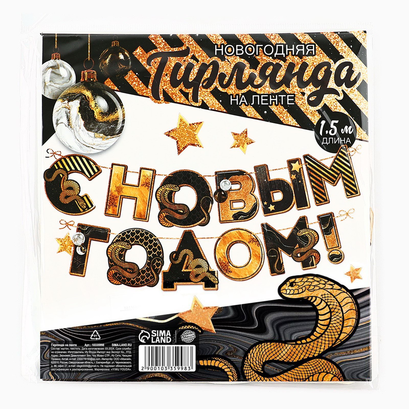 Цвет: Золотистый, Чёрный Размер упаковки: 17 x 0.5 x 17.5 см. Тематика праздника: Новый год Вид: Гирлянды, растяжки Набор: Нет Возраст: Любой tnved: 9505900000 tnved: 9505900000 | ||