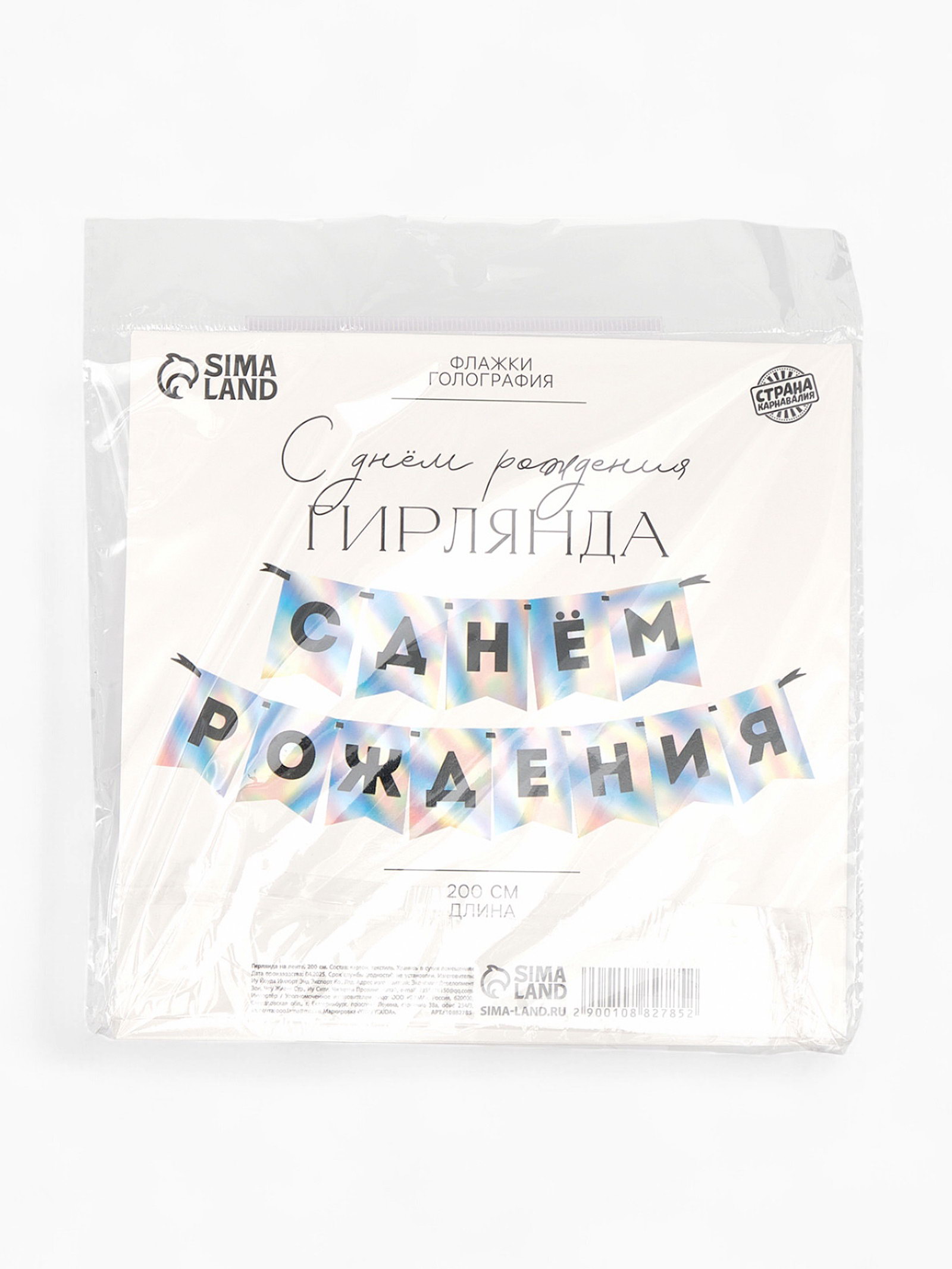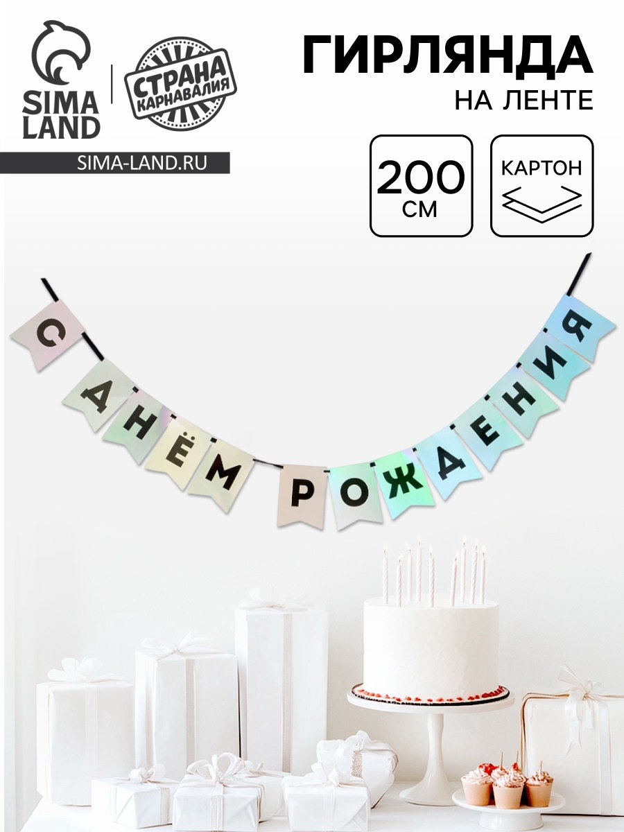 Гирлянда на ленте "С Днем Рождения", голография, 16x17x1 см., Страна Карнавалия, Китай