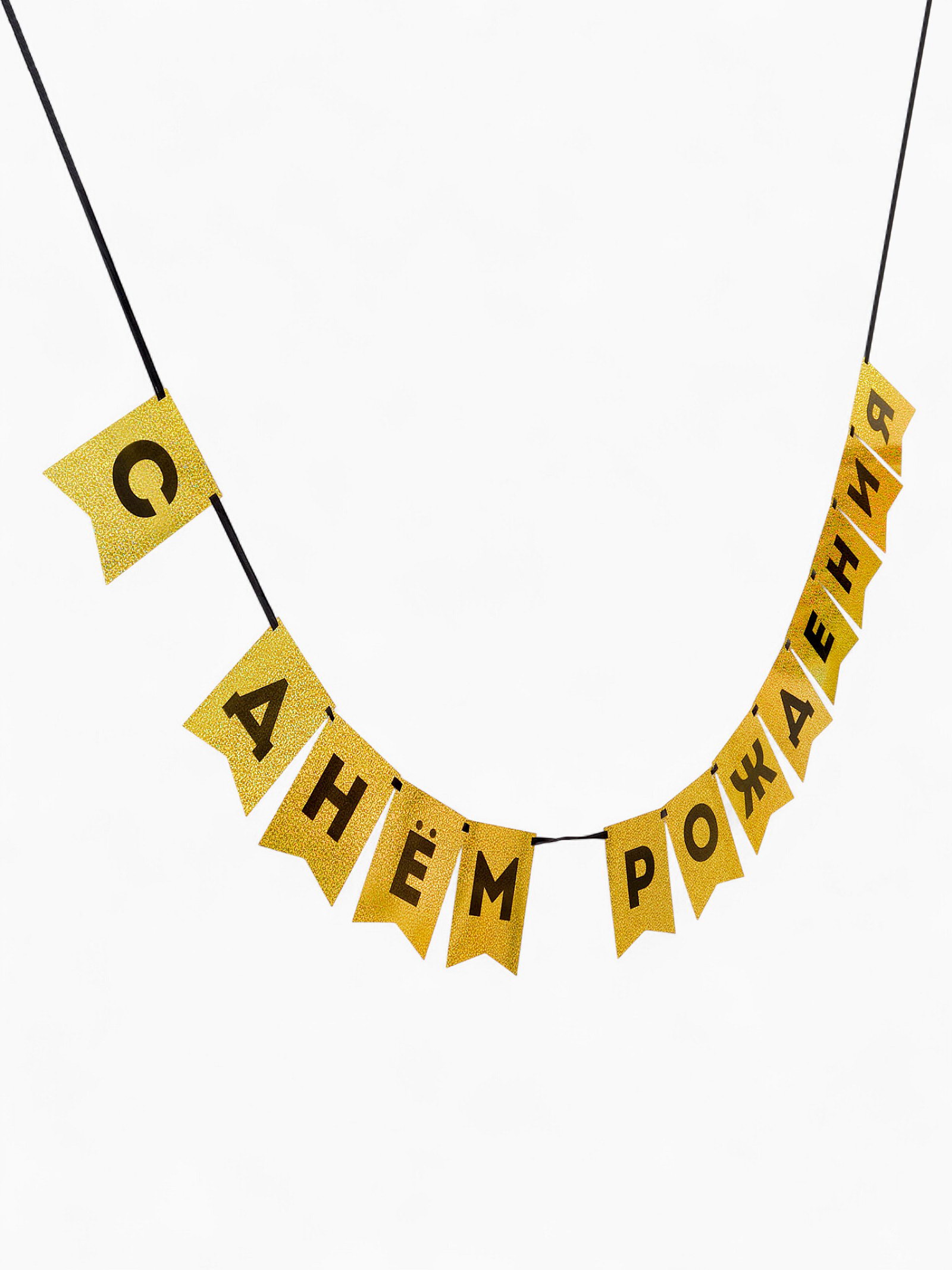 Гирлянда на ленте "С Днем Рождения", золотой картон с эффектом, 16x17x1 см., Страна Карнавалия, Китай