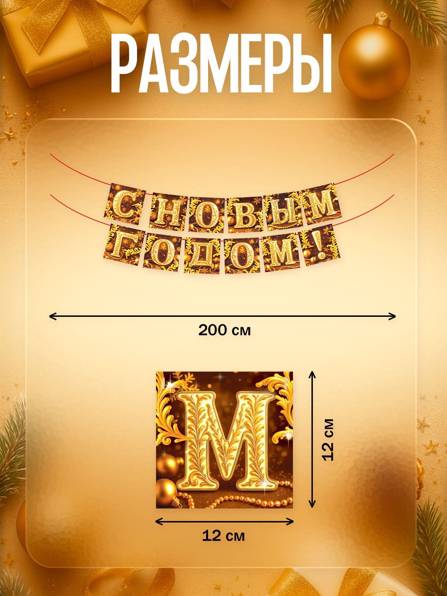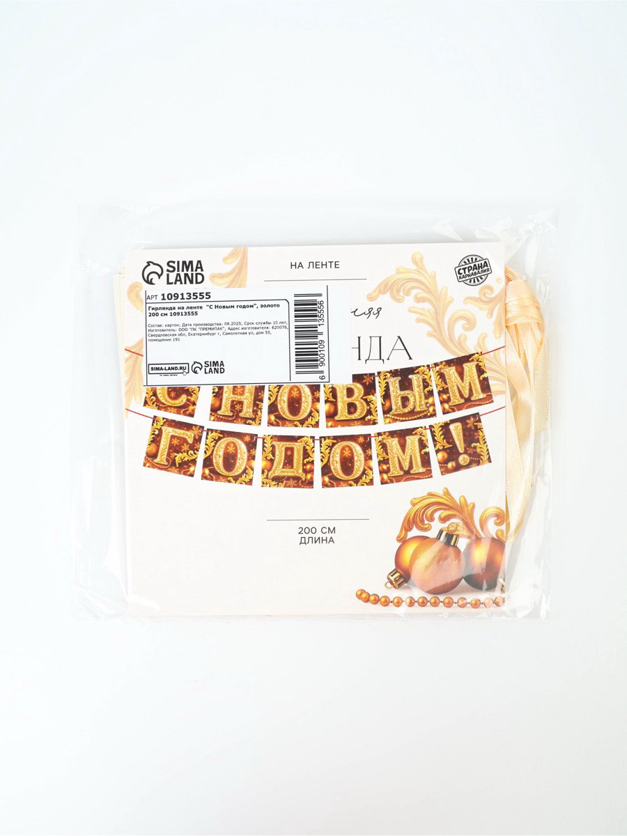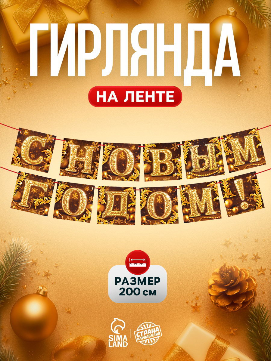 Гирлянда на ленте "С Новым годом", золото, 200 см, Страна Карнавалия, Россия
