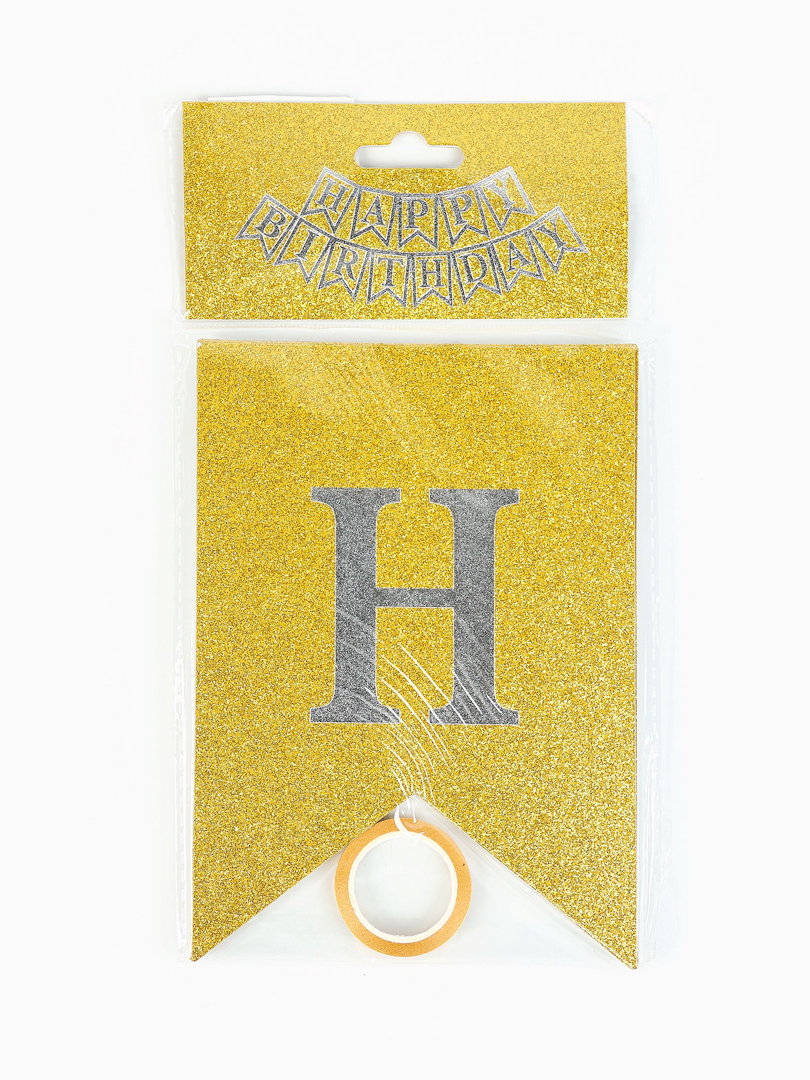 Гирлянда на ленте "Happy Birthday" золотая, 13x24x0.5 см., Китай