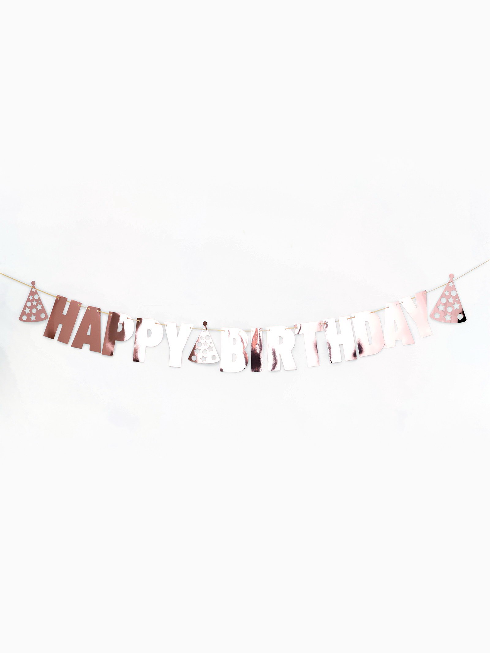 Гирлянда на ленте "Happy Birthday", розовое золото, 16x24x0.5 см., Китай