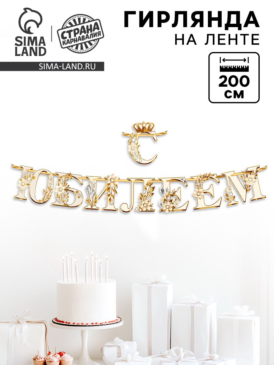 Гирлянда на ленте "С Юбилеем", 200 см, золото, 16.5x17x0.5 см., Страна Карнавалия, Китай