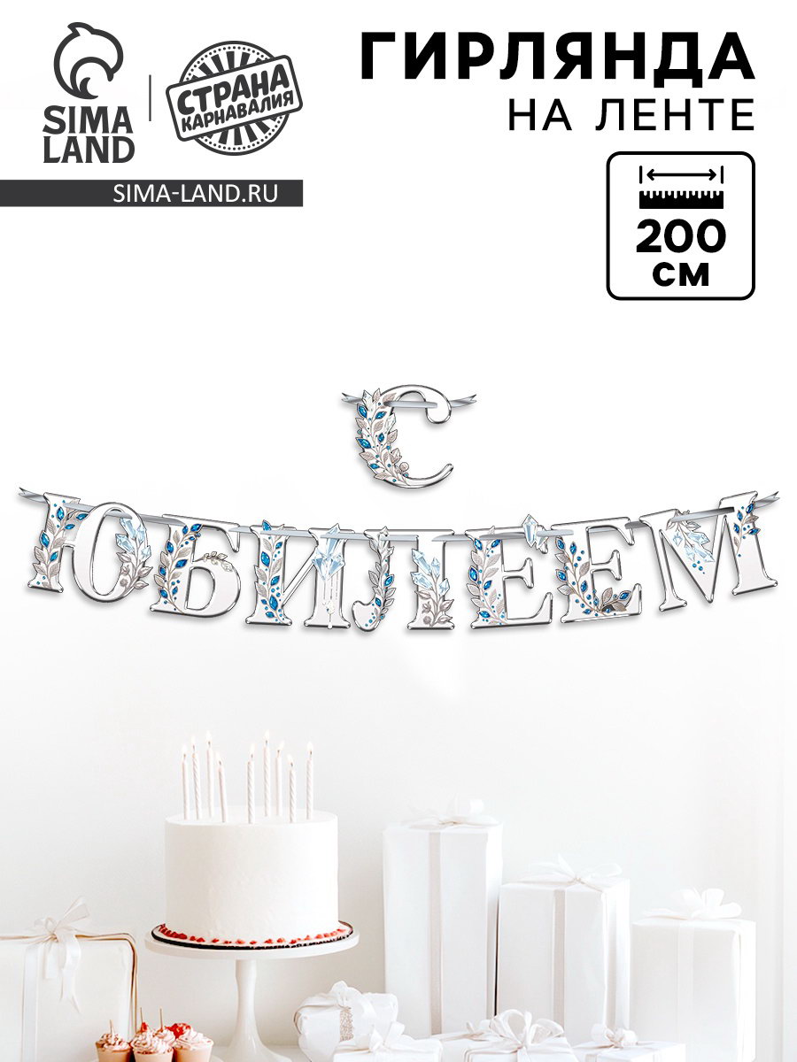 Гирлянда на ленте "С Юбилеем", 200 см, серебро, 16.5x17x0.5 см., Страна Карнавалия, Китай