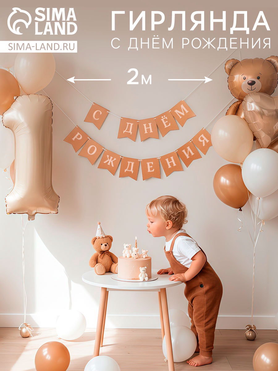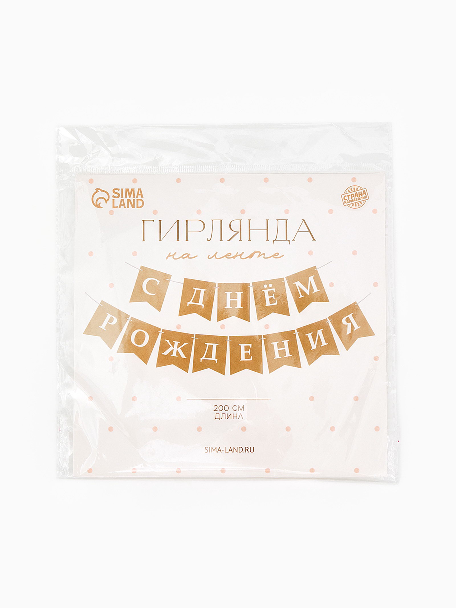 Гирлянда на ленте "С Днем Рождения", крафт, 16x17x0.5 см., Страна Карнавалия, Китай