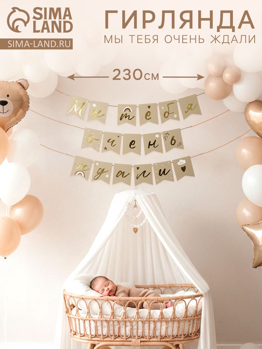 Гирлянда на ленте "Мы тебя очень ждали", 230 см, бежевая, 16.5x17x0.5 см., Страна Карнавалия, Китай