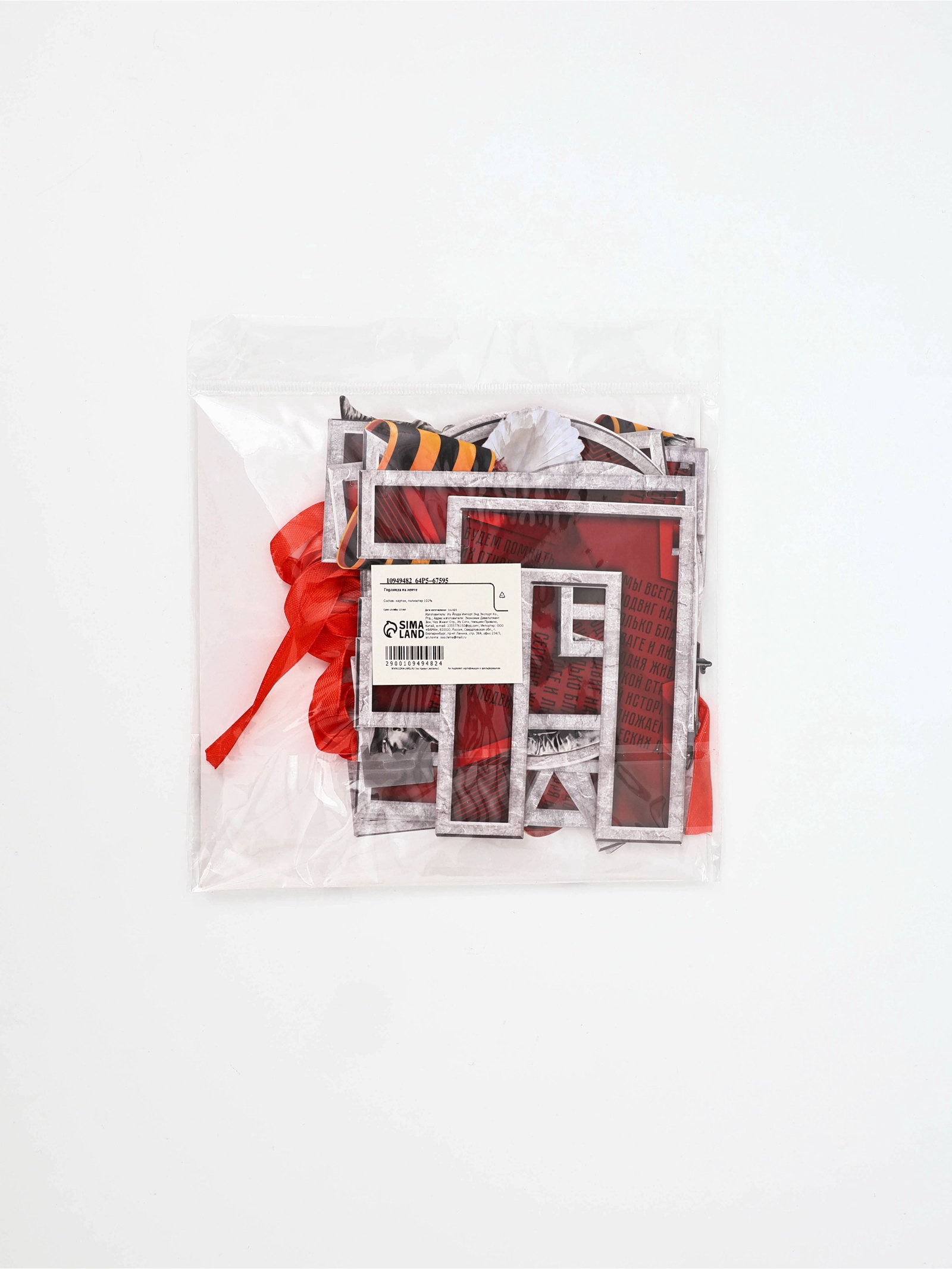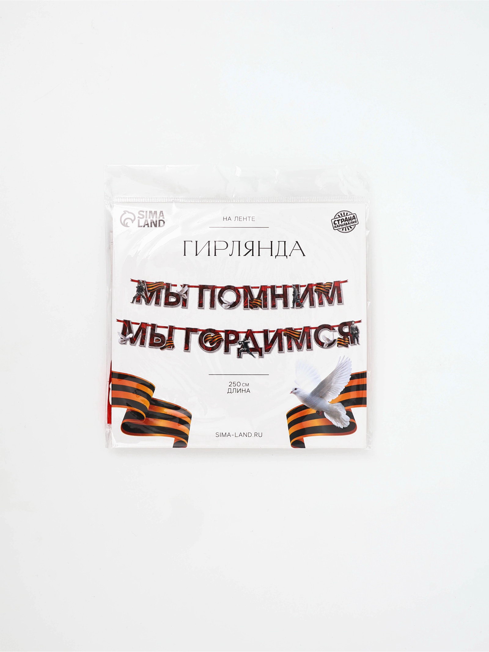 Гирлянда на ленте к 9 Мая "Мы помним", 250 см, 16.5x17x1 см., Страна Карнавалия, Китай