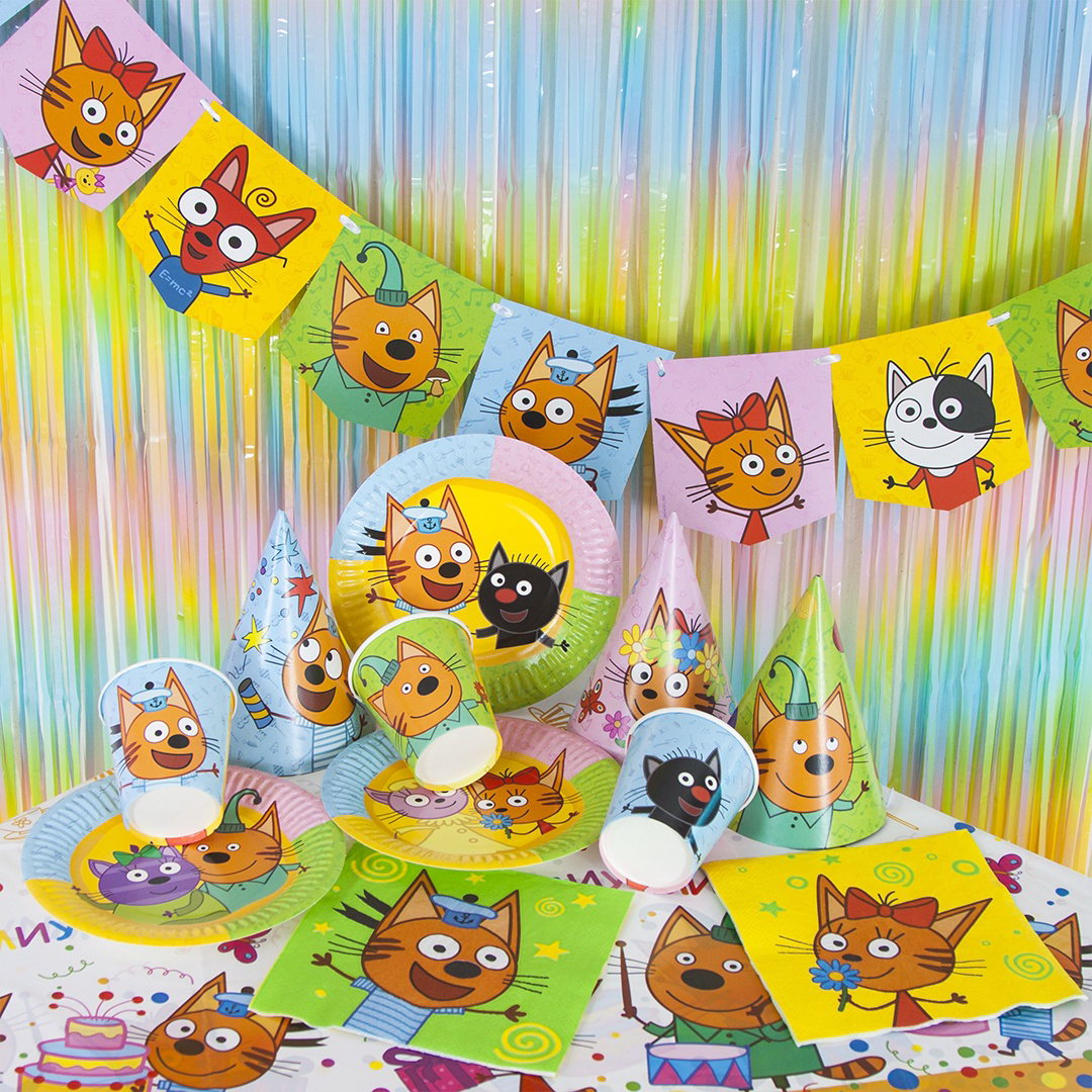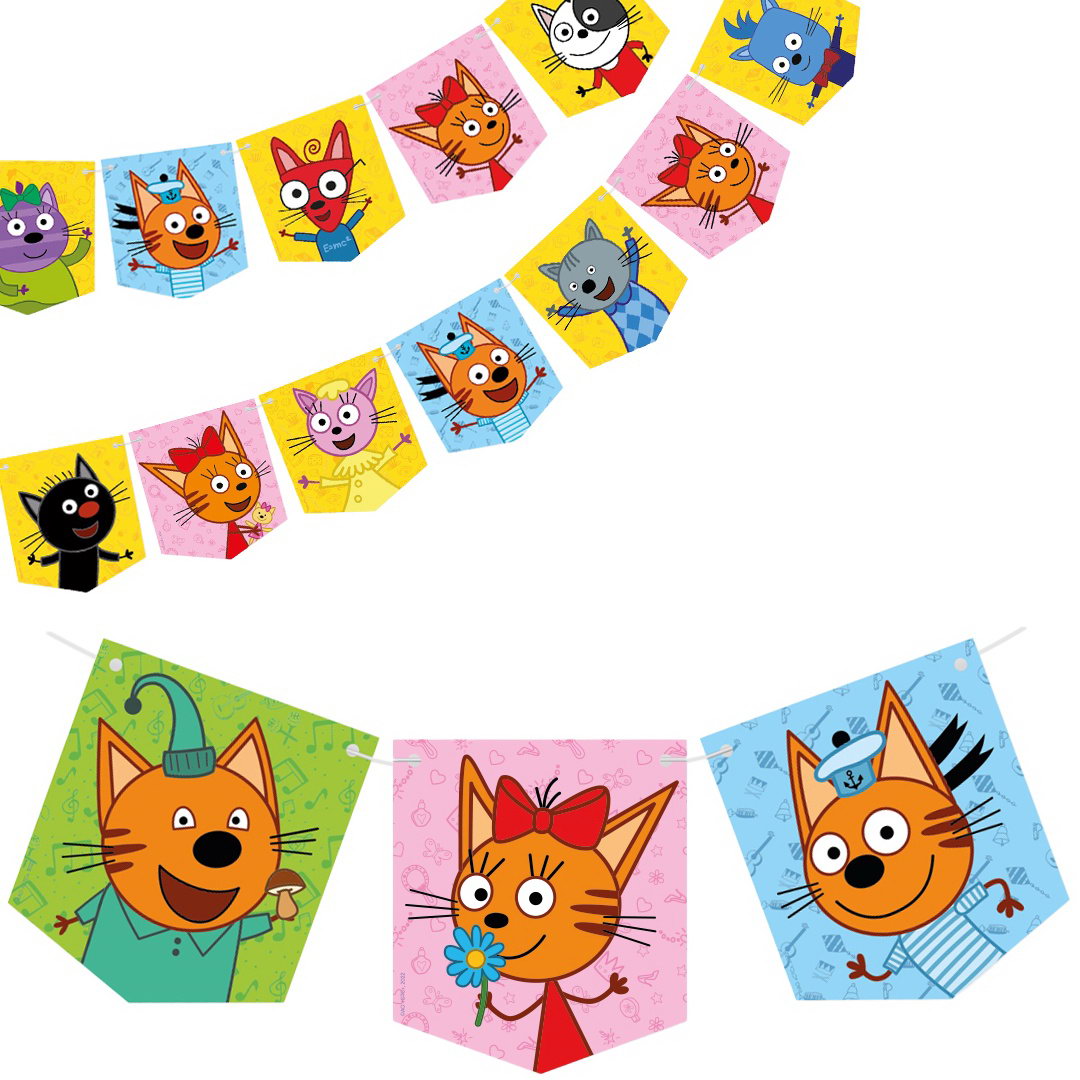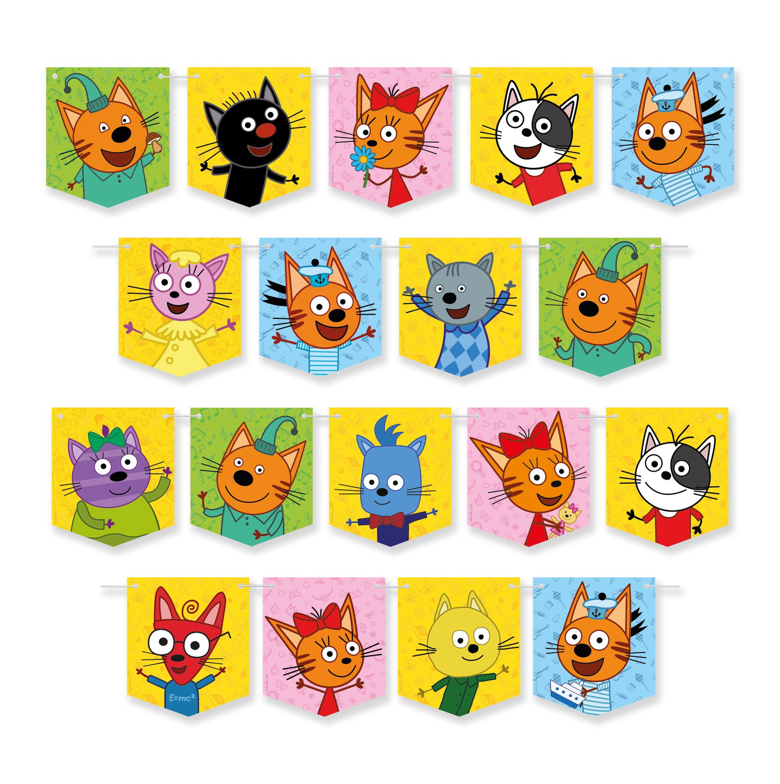 Гирлянда "Флажки, Три Кота, Играем вместе" ассорти, 300 см, Волна Веселья, Россия