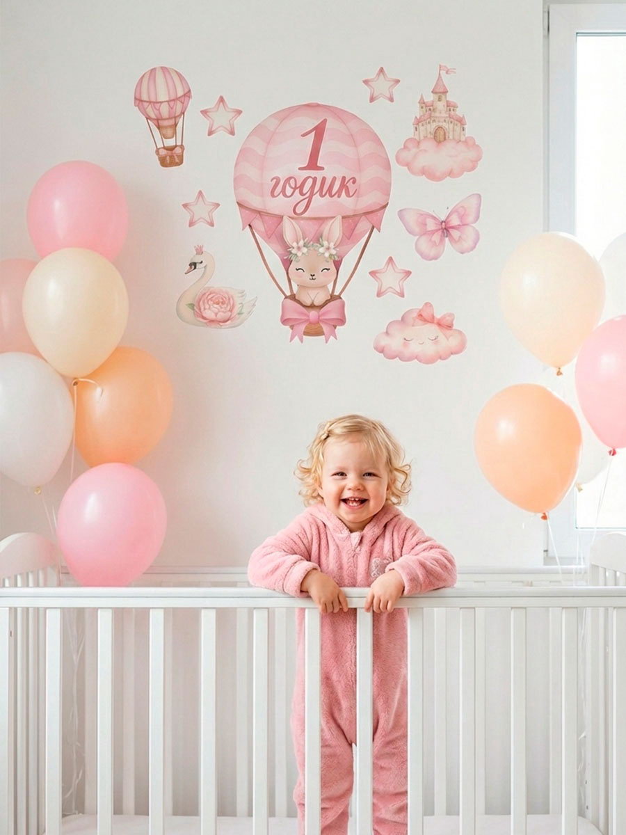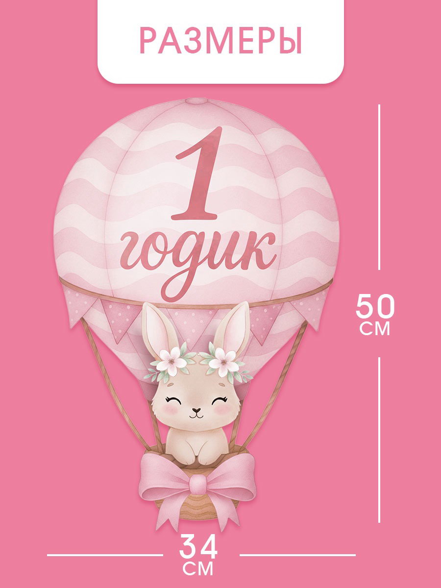Набор оформительский "1 годик" для девочки, 11 предметов, 51x50x0.3 см., Страна Карнавалия, Китай
