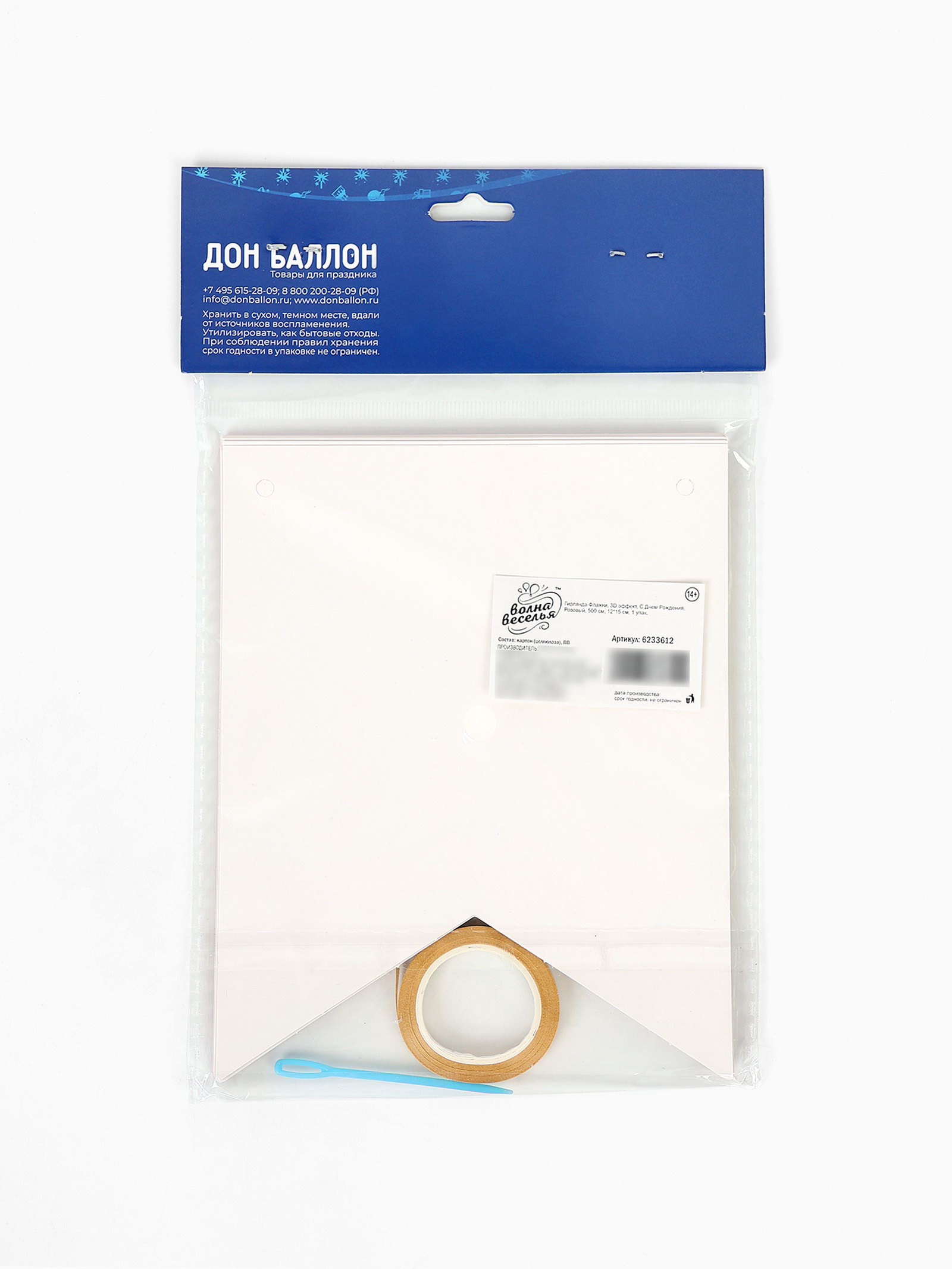 Гирлянда-флажки "С Днем Рождения", 3D эффект, 500 см, Волна Веселья, Китай