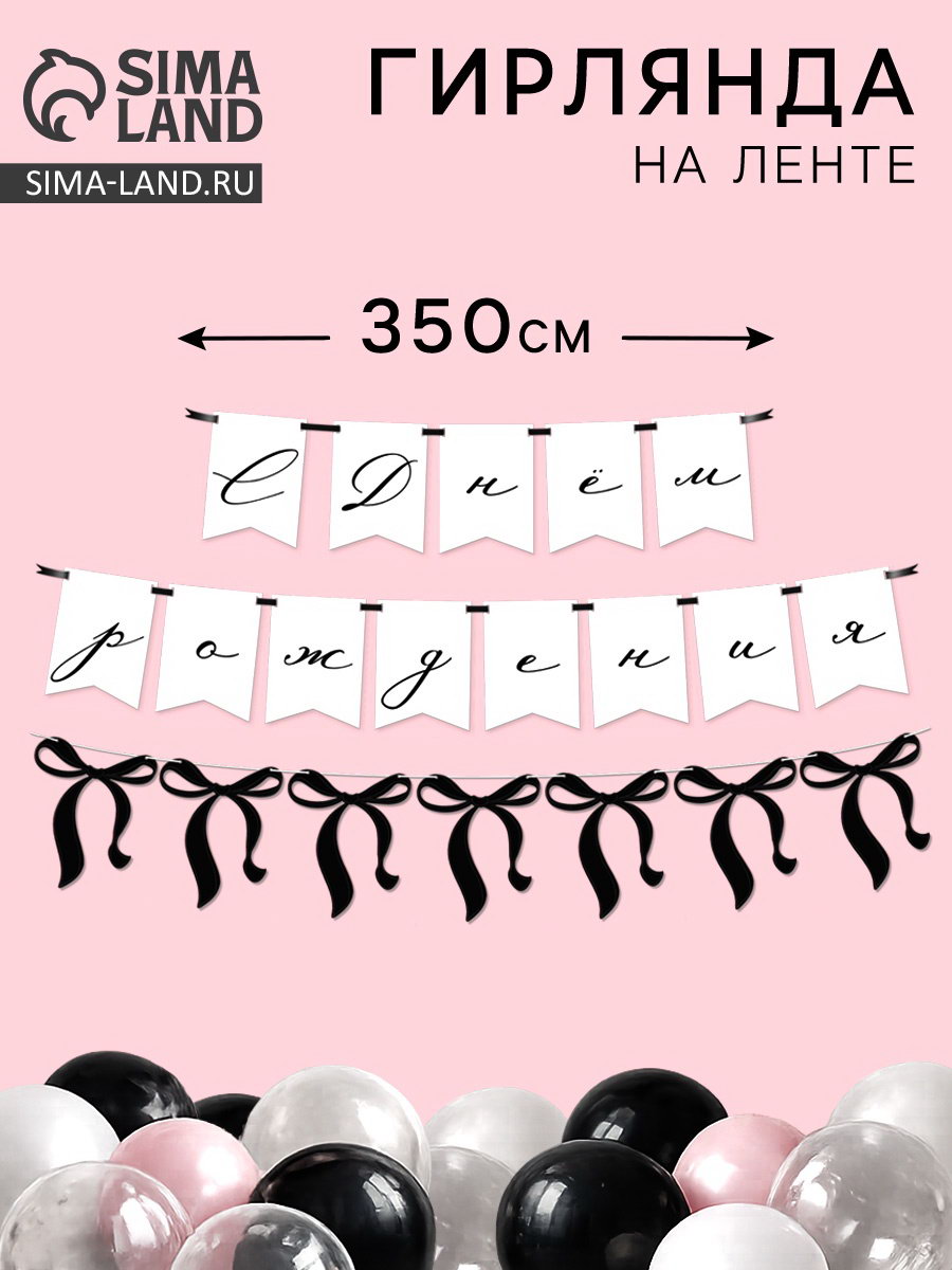 Гирлянда на ленте "С Днём рождения", 350 см с бантиками, 1x17x16.5 см., Страна Карнавалия, Китай