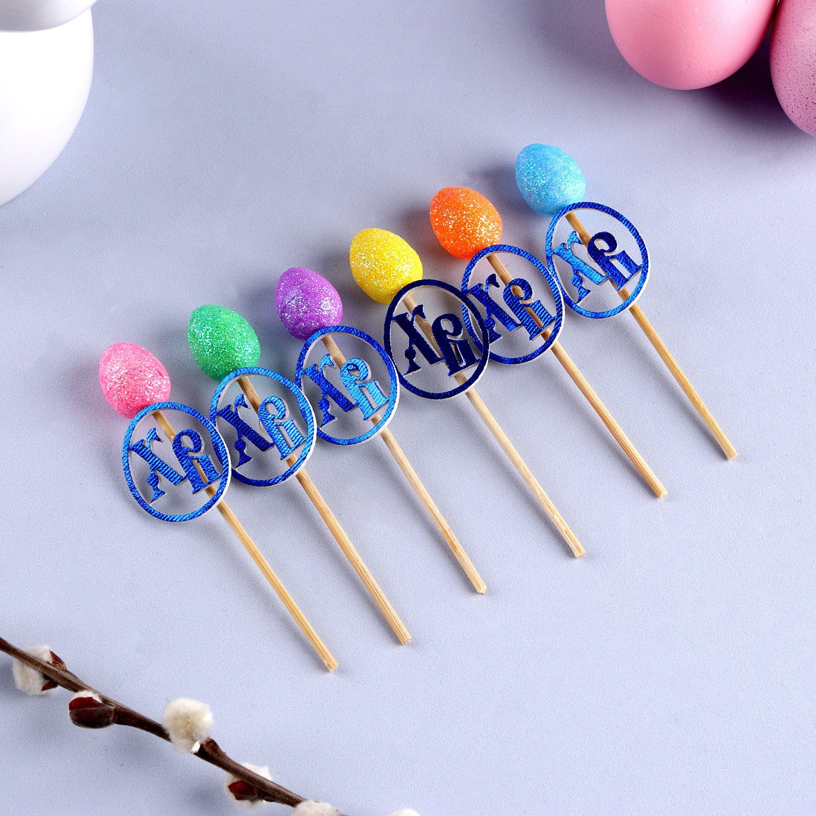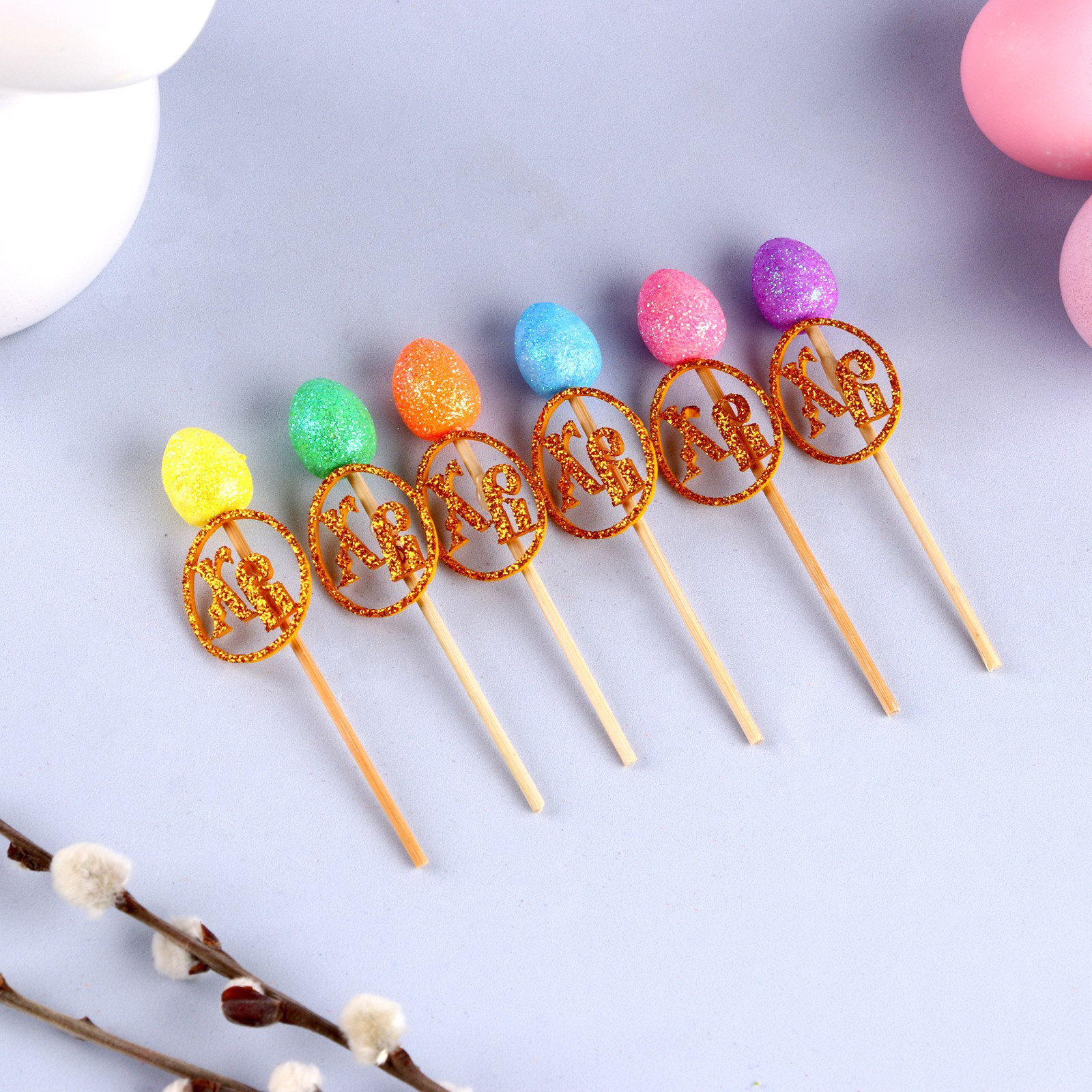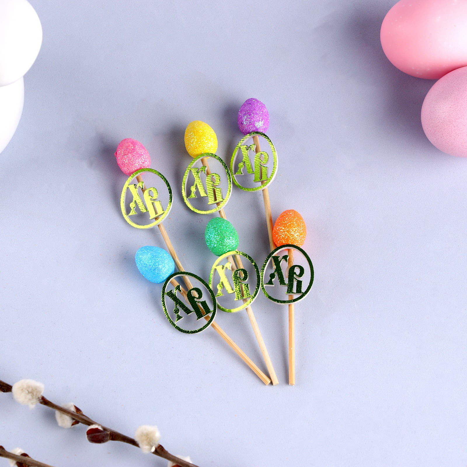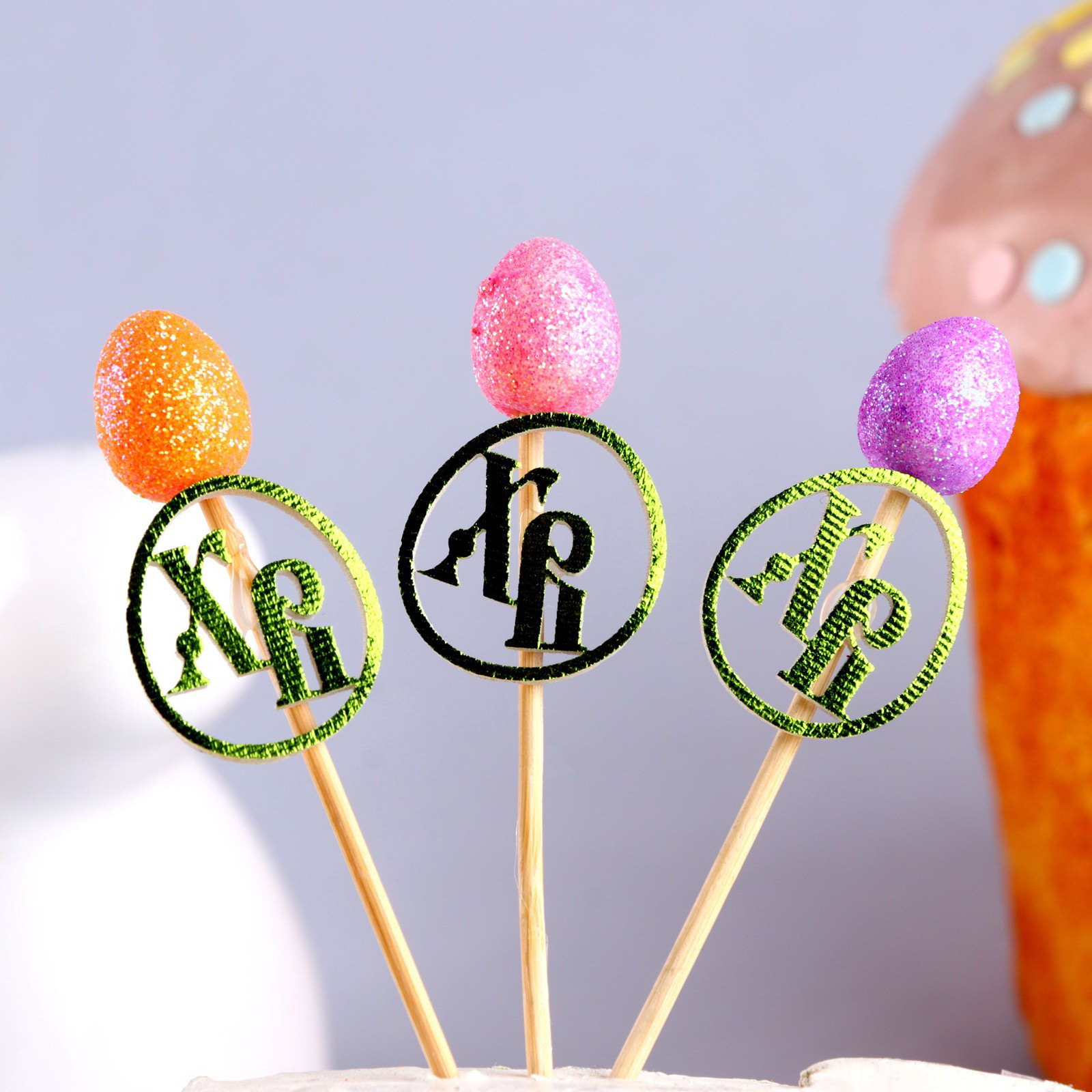 Украшение для кулича "Декор на палочке. ХВ", набор 6 шт., Страна Карнавалия, Россия
