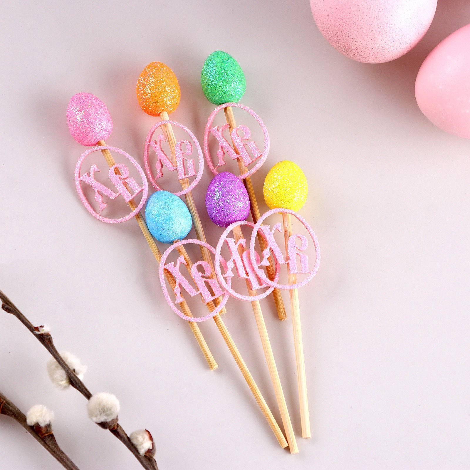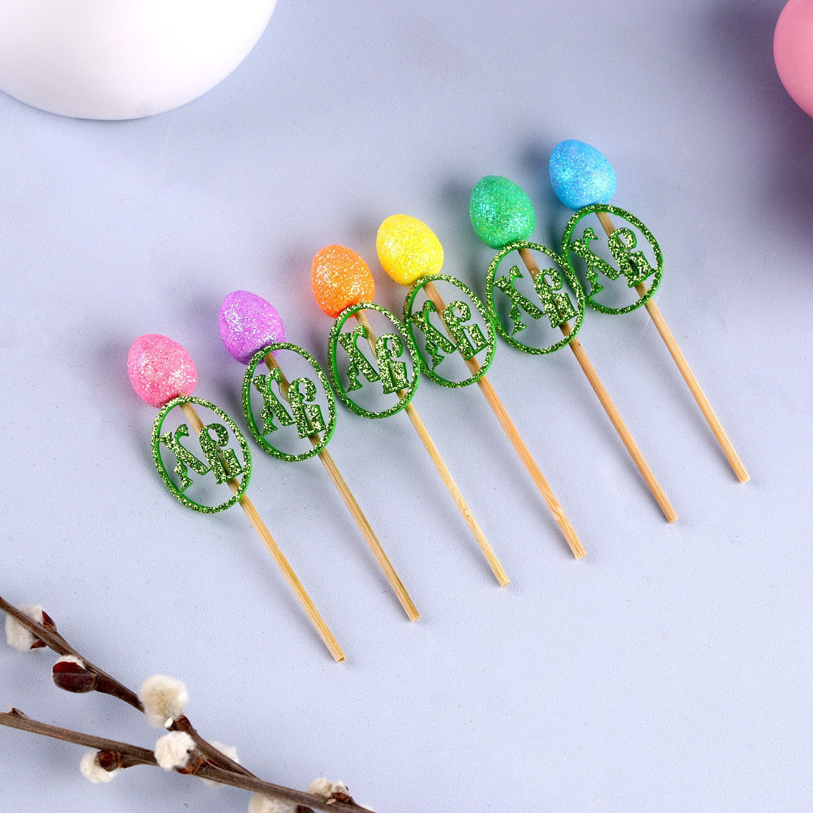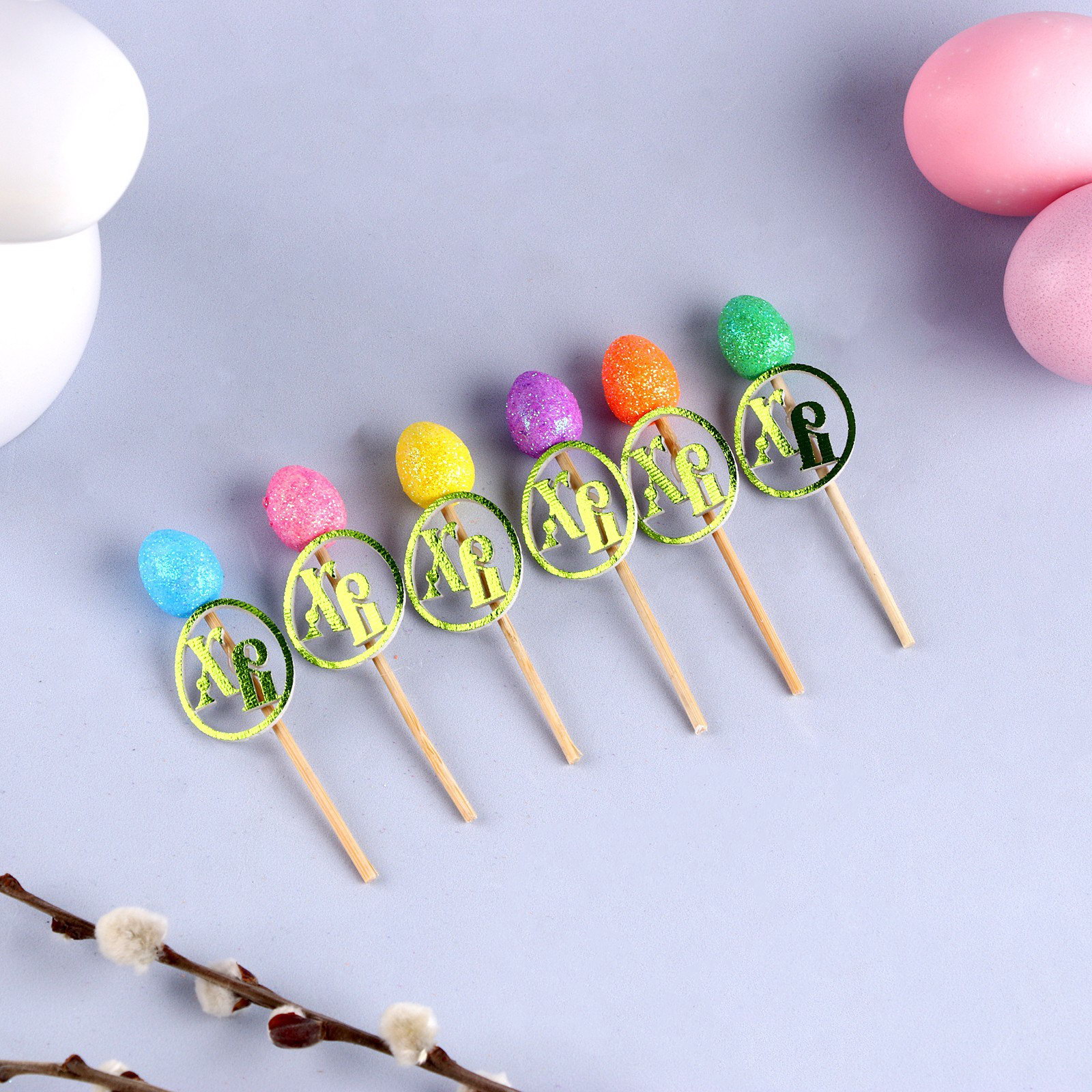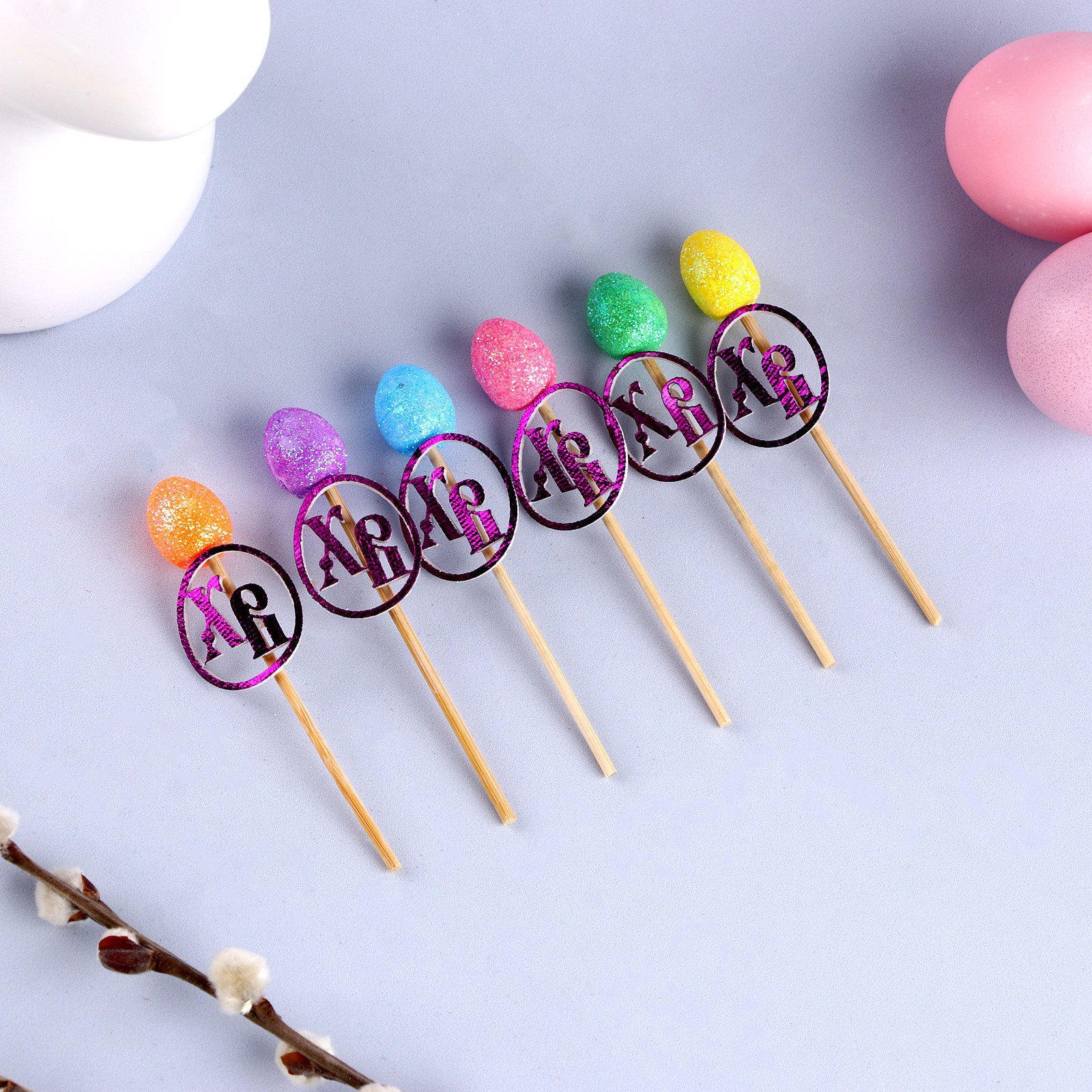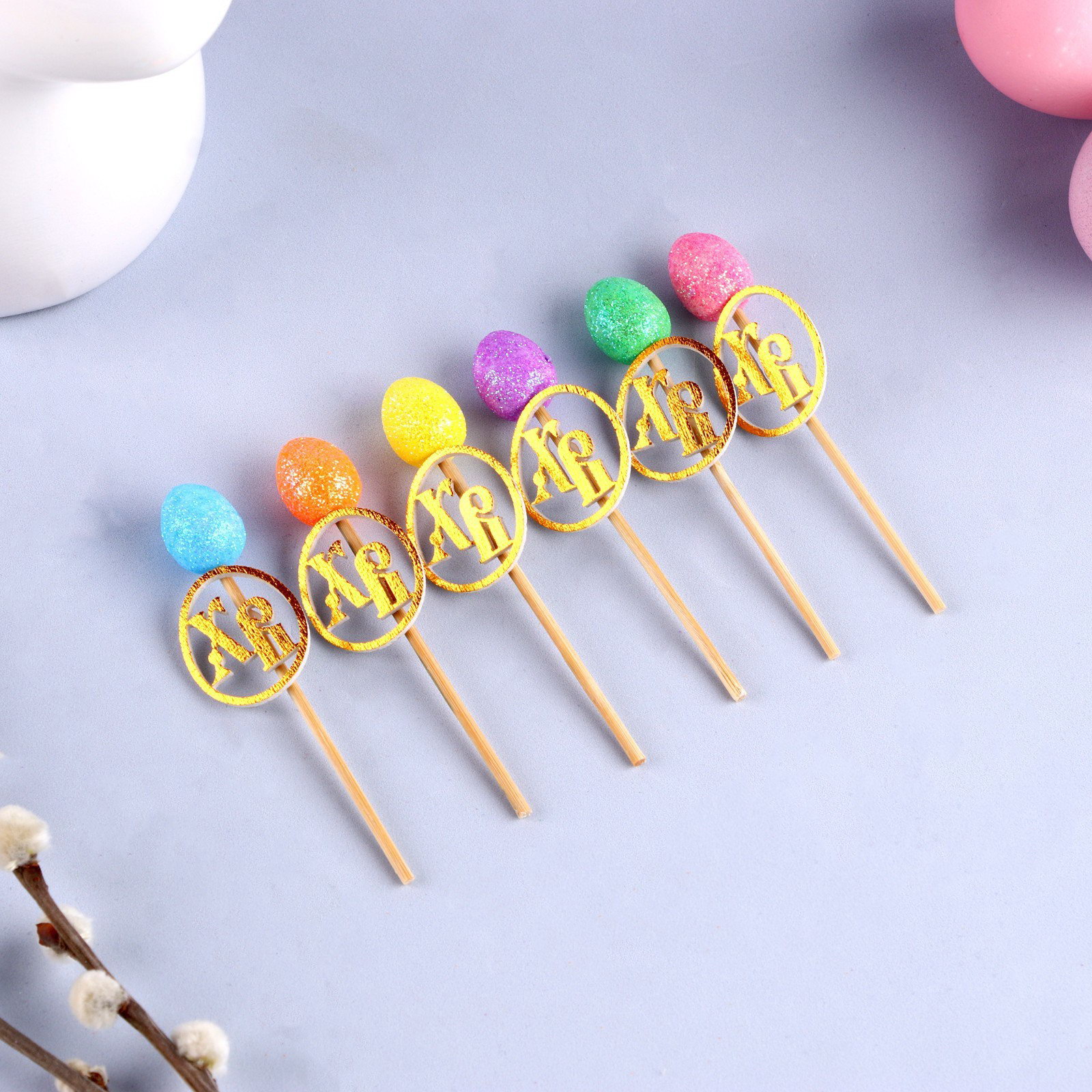 Украшение для кулича "Декор на палочке. ХВ", набор 6 шт., Страна Карнавалия, Россия