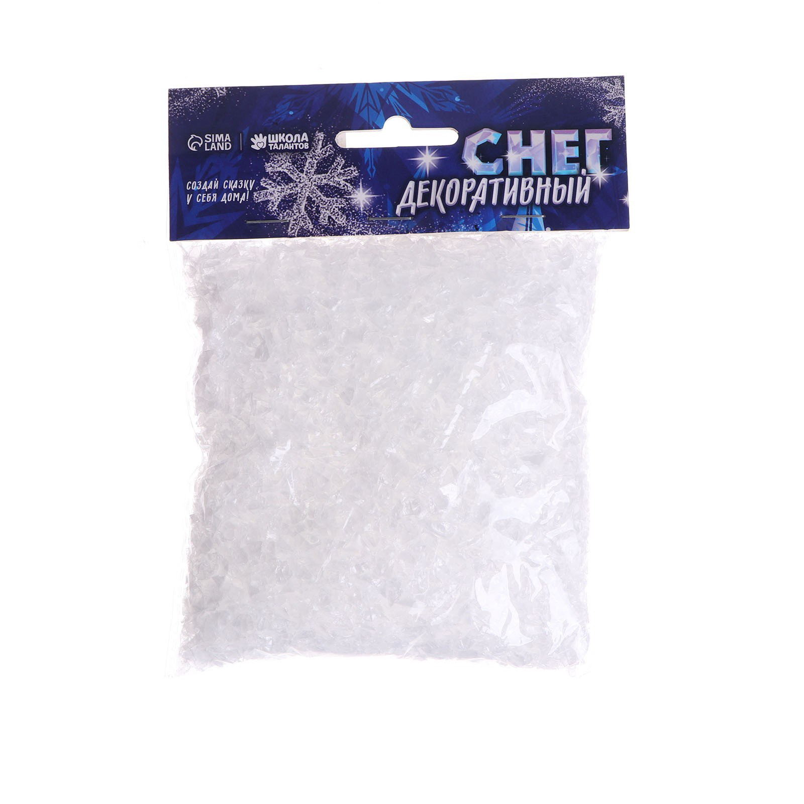 Снег искусственный сыпучий для декора "Хлопья мерцающие" 60 г, 3x13.1x17 см., Школа талантов, Китай