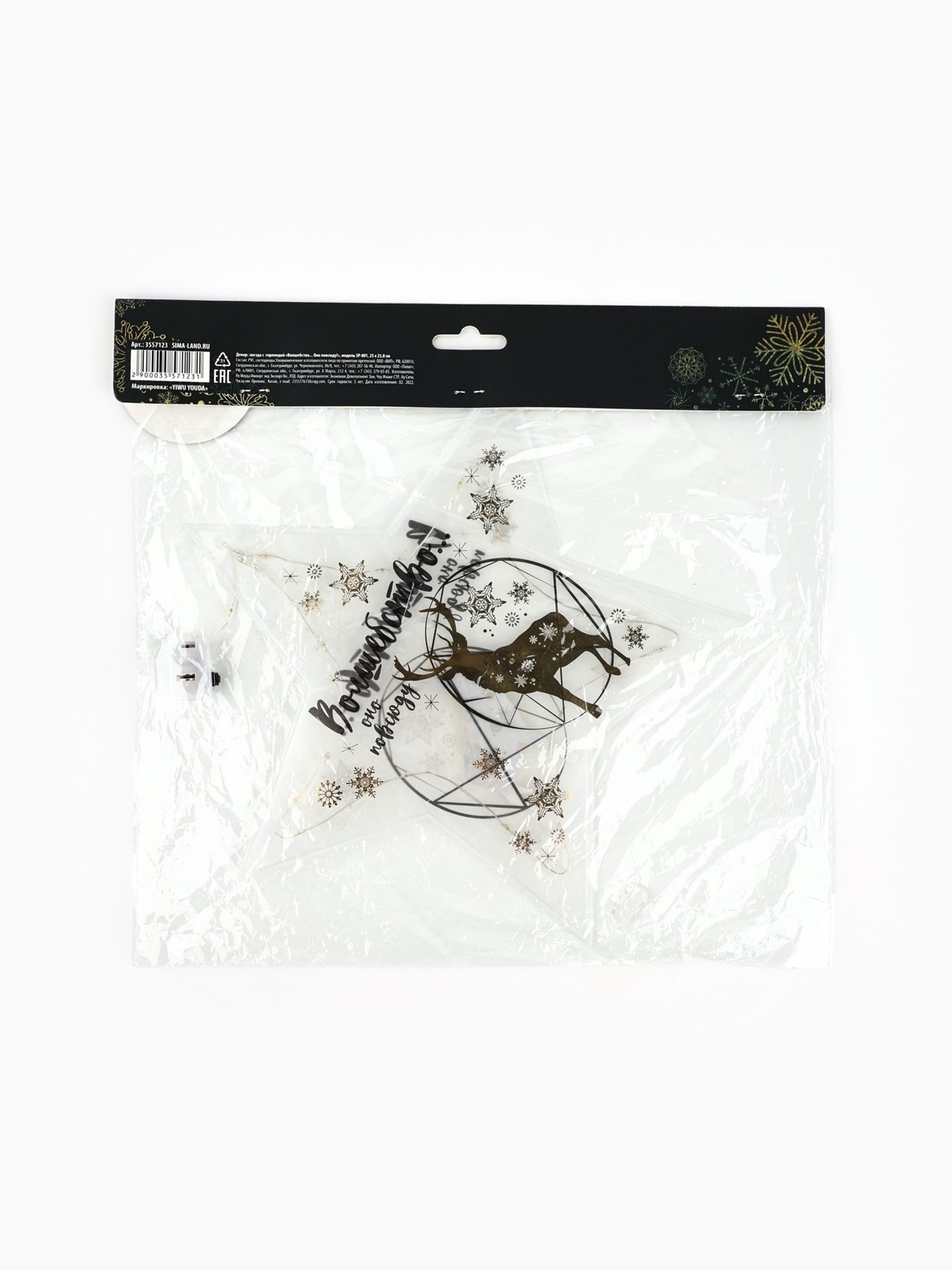 Звезда с гирляндой новогодняя "Волшебство. Оно повсюду!", 25x23.8 см, 23.8x25x3 см., Сима-ленд, Китай