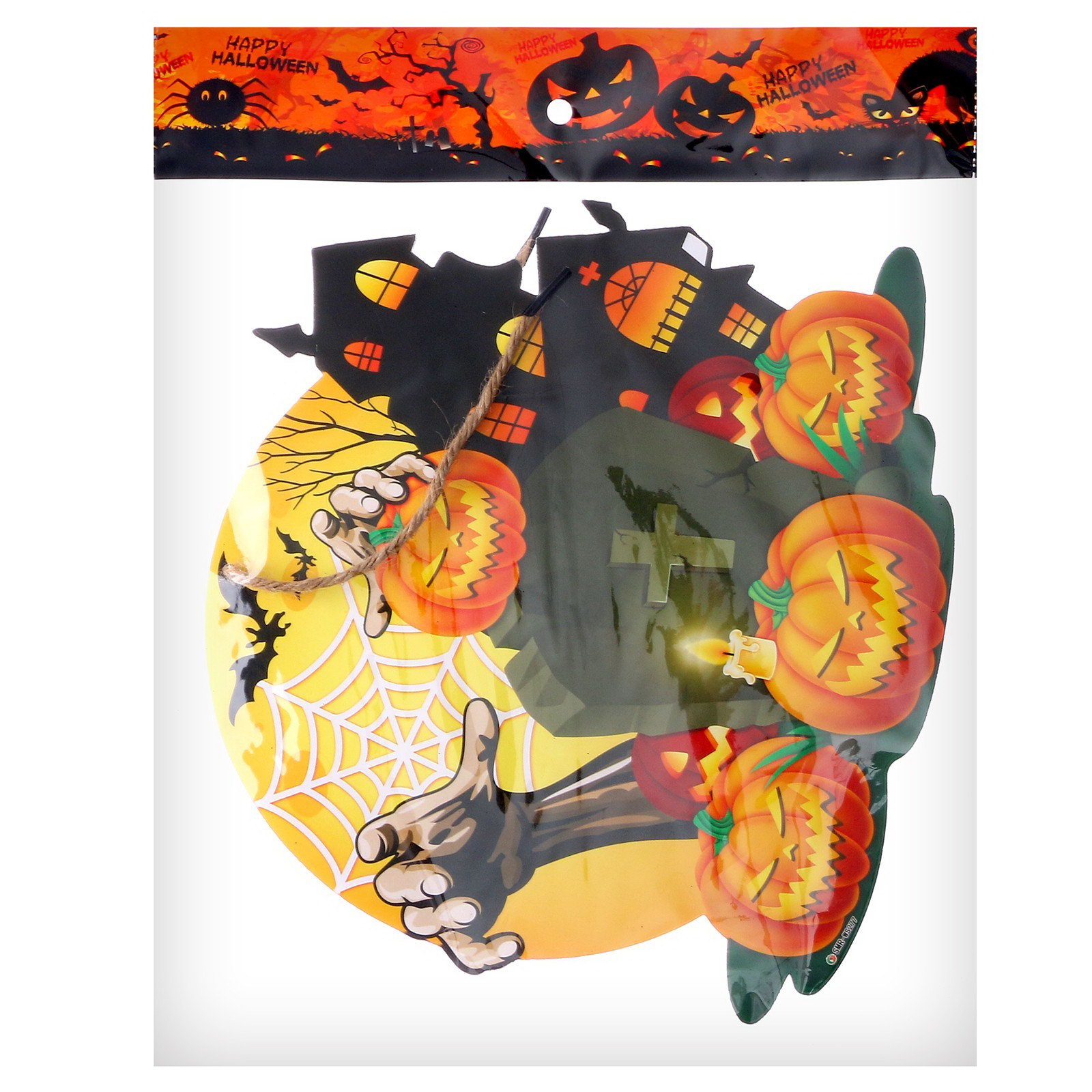 Размер упаковки: 26 x 0.5 x 34 см. Вид: Подвески Высота, см: 24 Набор: Нет Длина, см: 25.5 Тематика праздника: Хэллоуин В наборе, шт.: 1 В наборе, шт.: 1 tnved: 9505900000 Подвеска "Новолуние на кладбище" это жутковато-веселый декор для самых страшных вечеринок. Создайте неповторимую атмосферу ужаса в своем доме или офисе с этим ярким аксессуаром. Особенности и преимущества декора