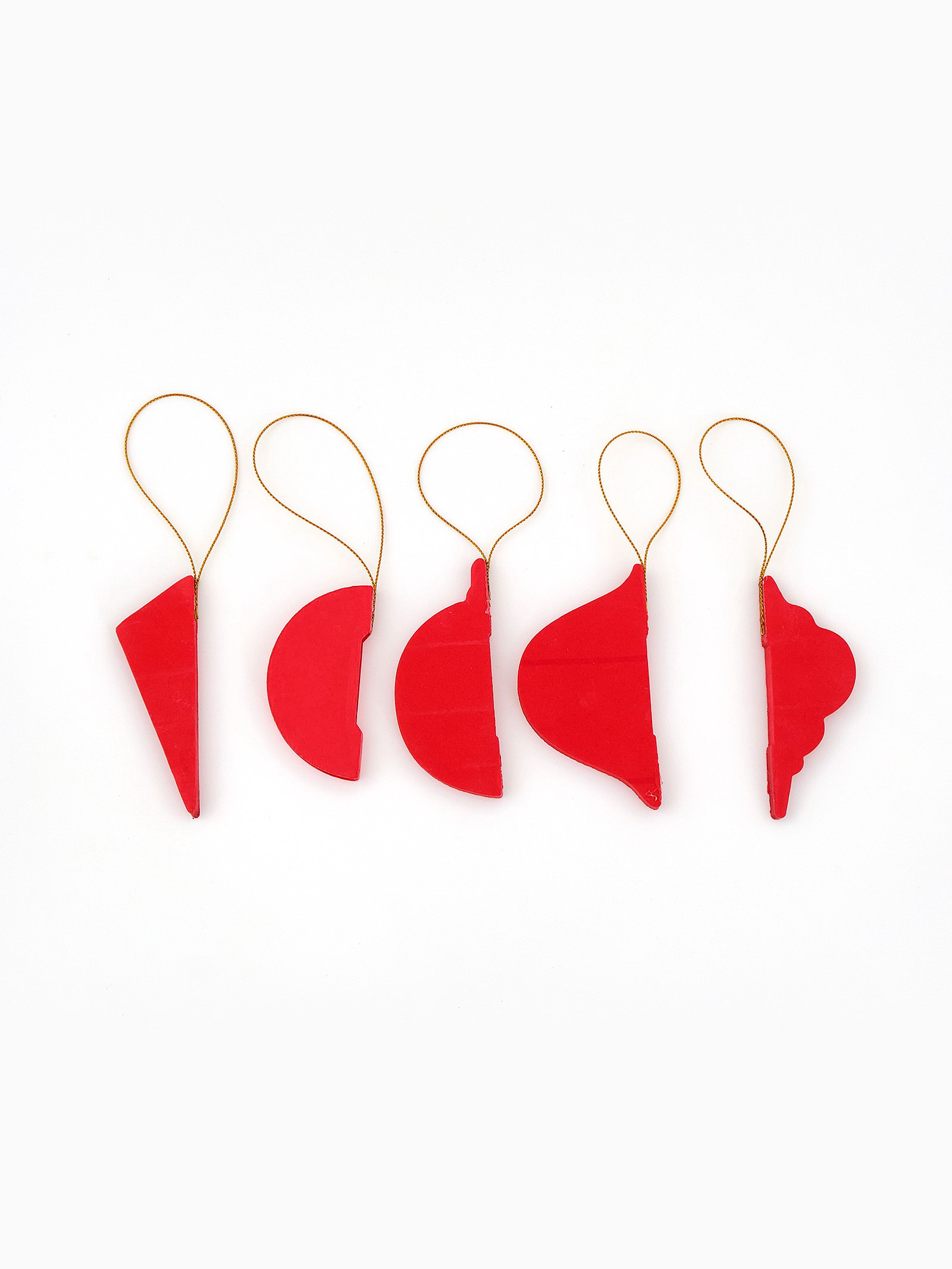 Елочные игрушки из бумаги, набор 5 штук, красные, 11x11x1 см., Китай