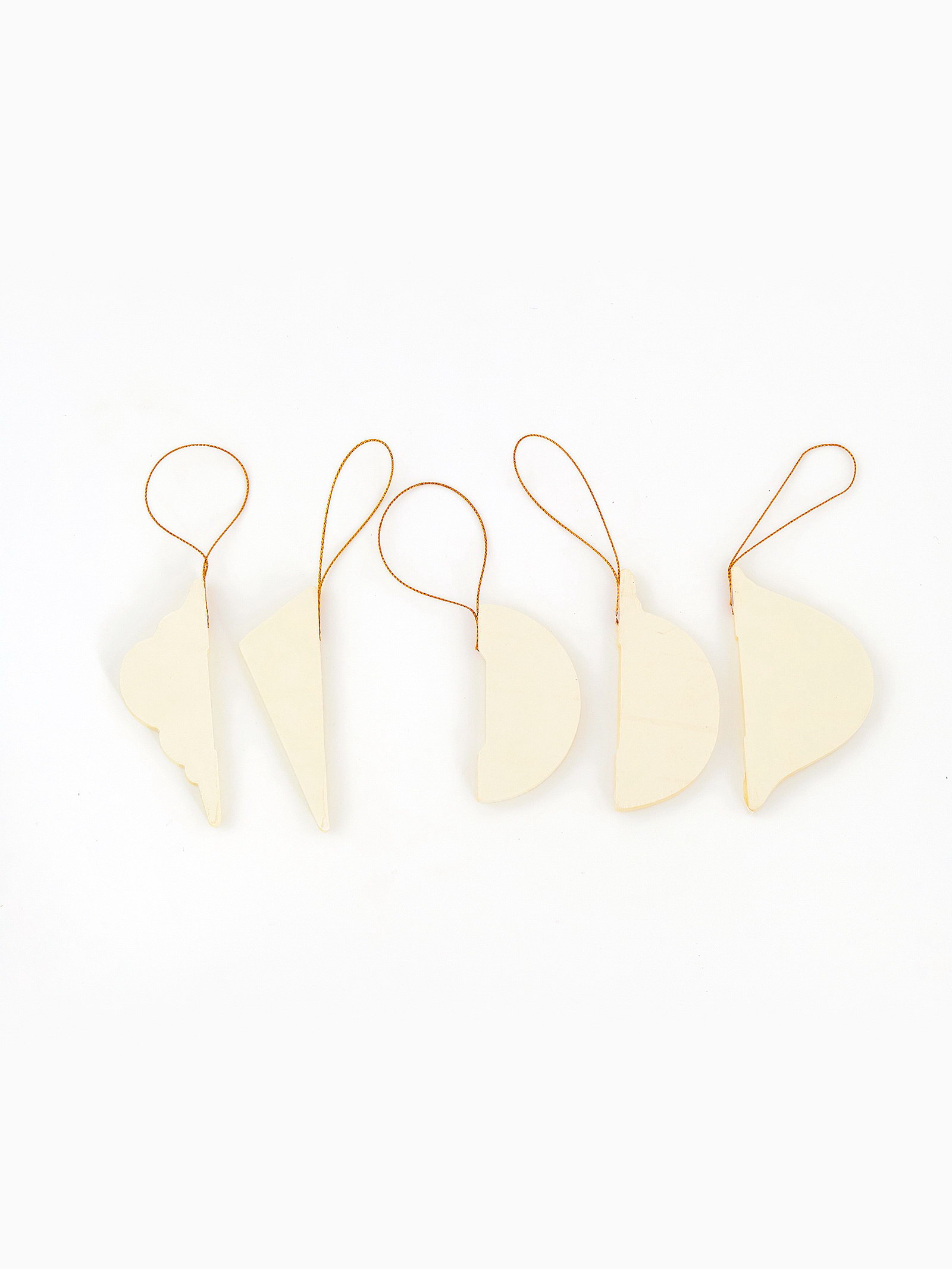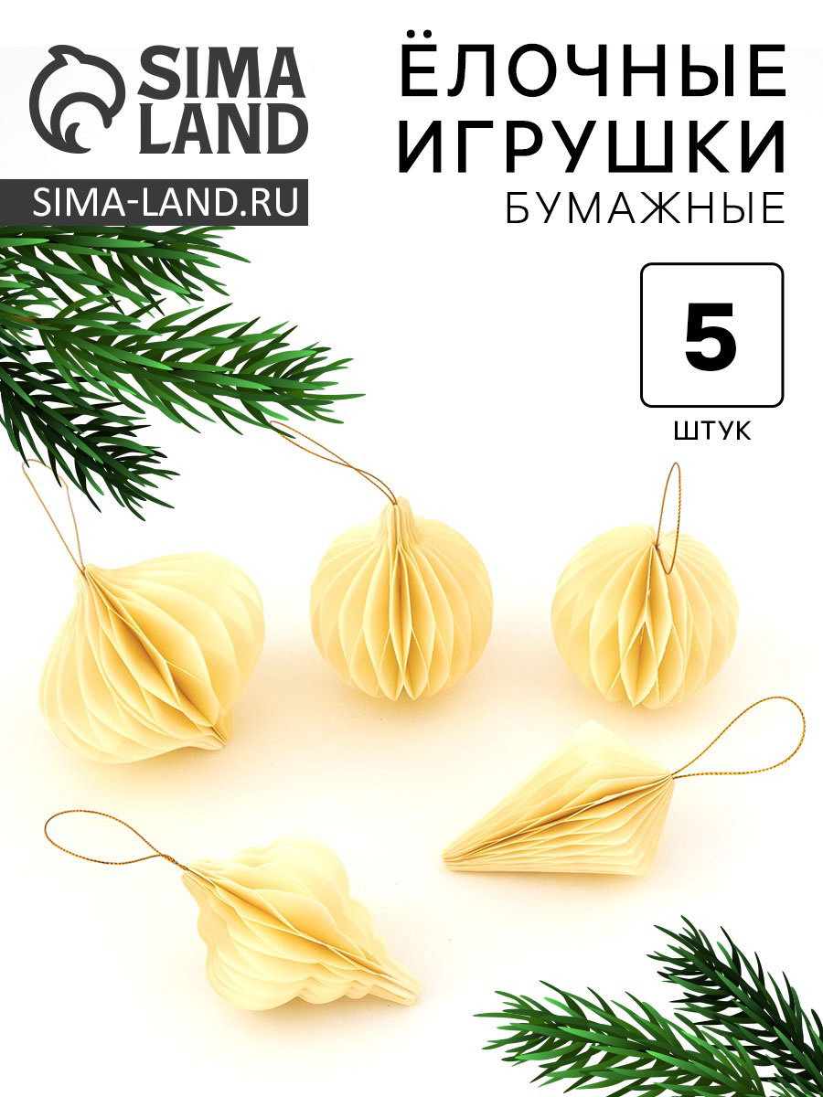 Елочные игрушки из бумаги, набор 5 штук, бежевые, 11x11x1 см., Китай