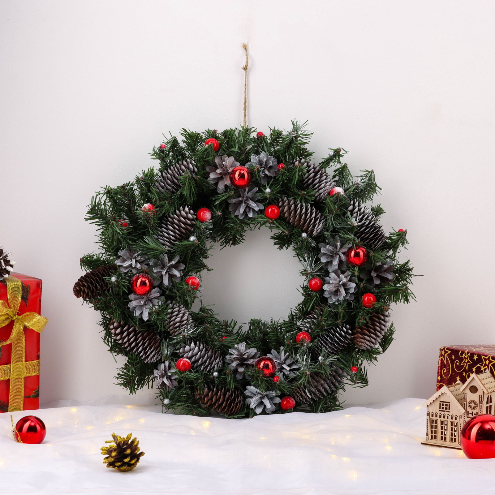 Для вашего праздника Каждый элемент венка собран вручную, что делает его уникальным украшением для Нового года и Рождества. Он станет центральным элементом декора, который задаёт тон всему праздничному интерьеру. Вам не потребуется дополнительных украшений этот венок самодостаточен и производит яркое впечатление. | ||