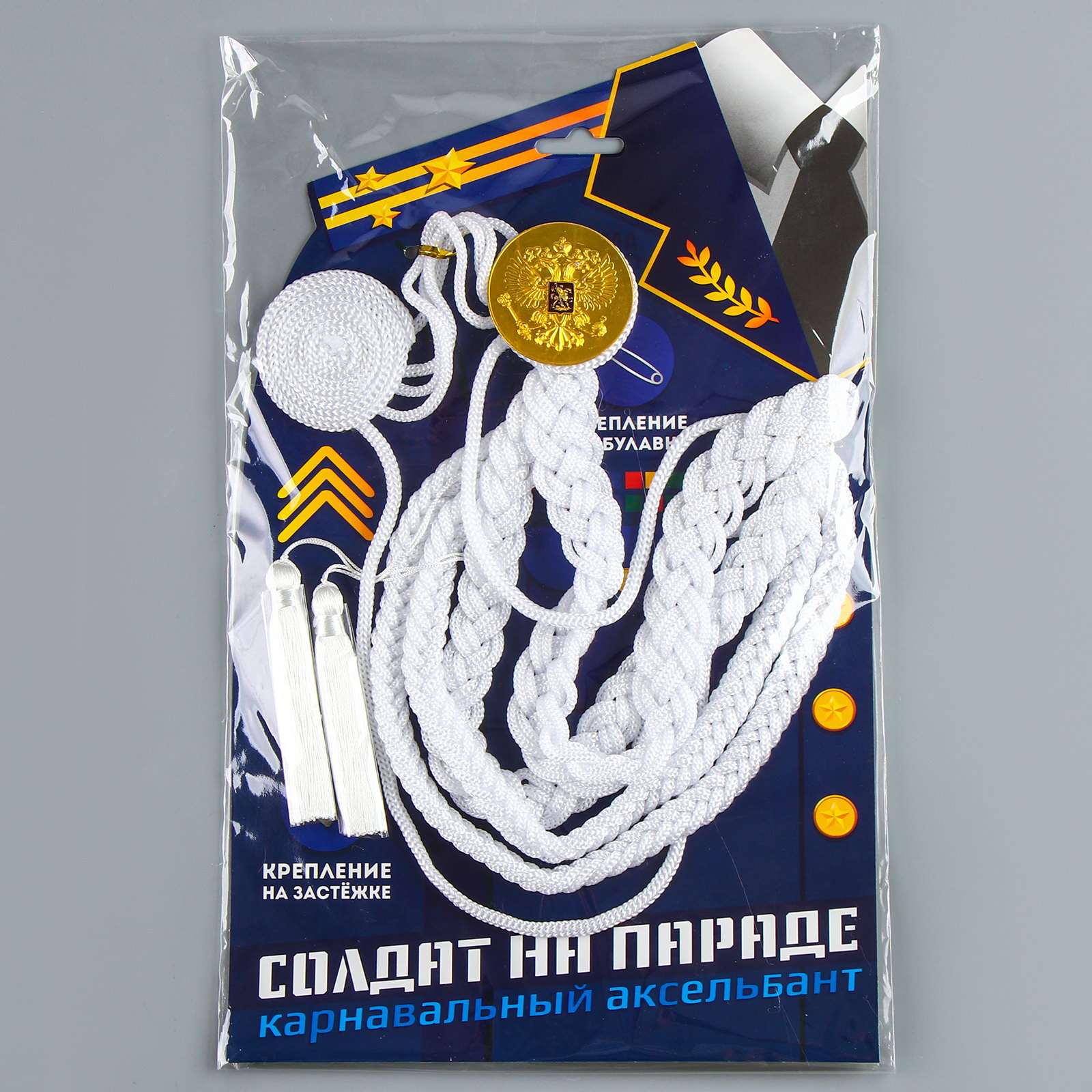 Тематика: 9 мая, Военные Размер упаковки: 21 x 2 x 34 см. Персонажи: Солдат Вид: Аксельбант Тематики праздника: День Победы (9 мая) tnved: 7117190000 Яркий и стильный аксельбант незаменимый аксессуар для создания образа солдата на параде. Этот элемент костюма поможет вам погрузиться в атмосферу праздника и почувствовать себя настоящим защитником Родины. Особенности аксельбанта