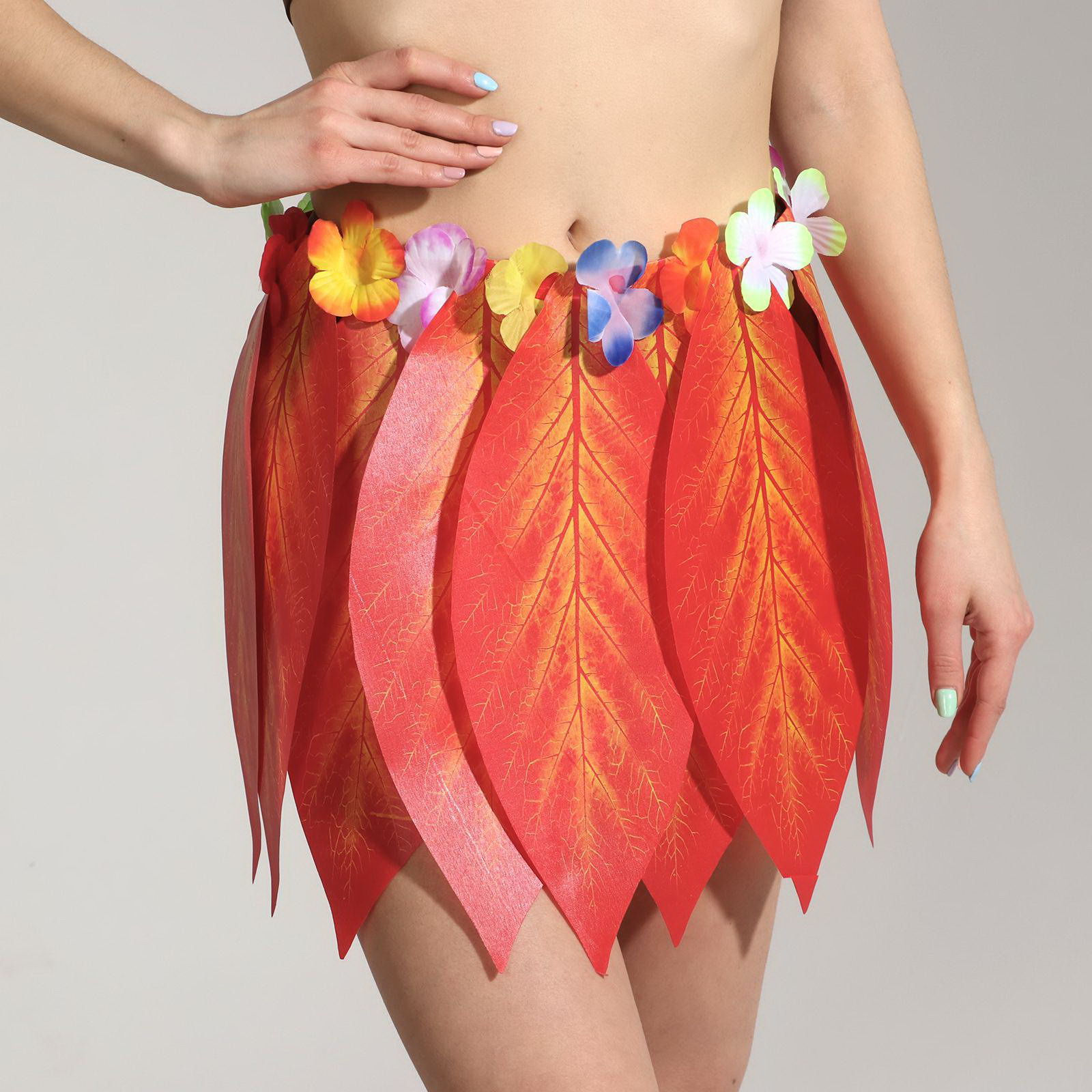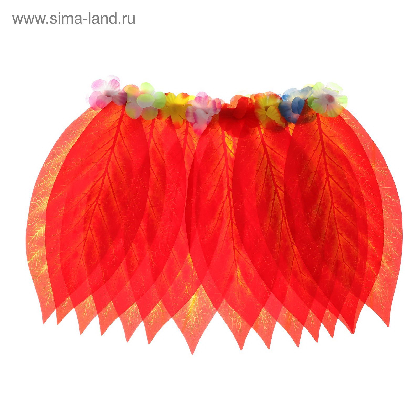 Гавайская юбка "Листики красные и цветочки" 36 см, 36x0.2x36 см., Страна Карнавалия, Китай