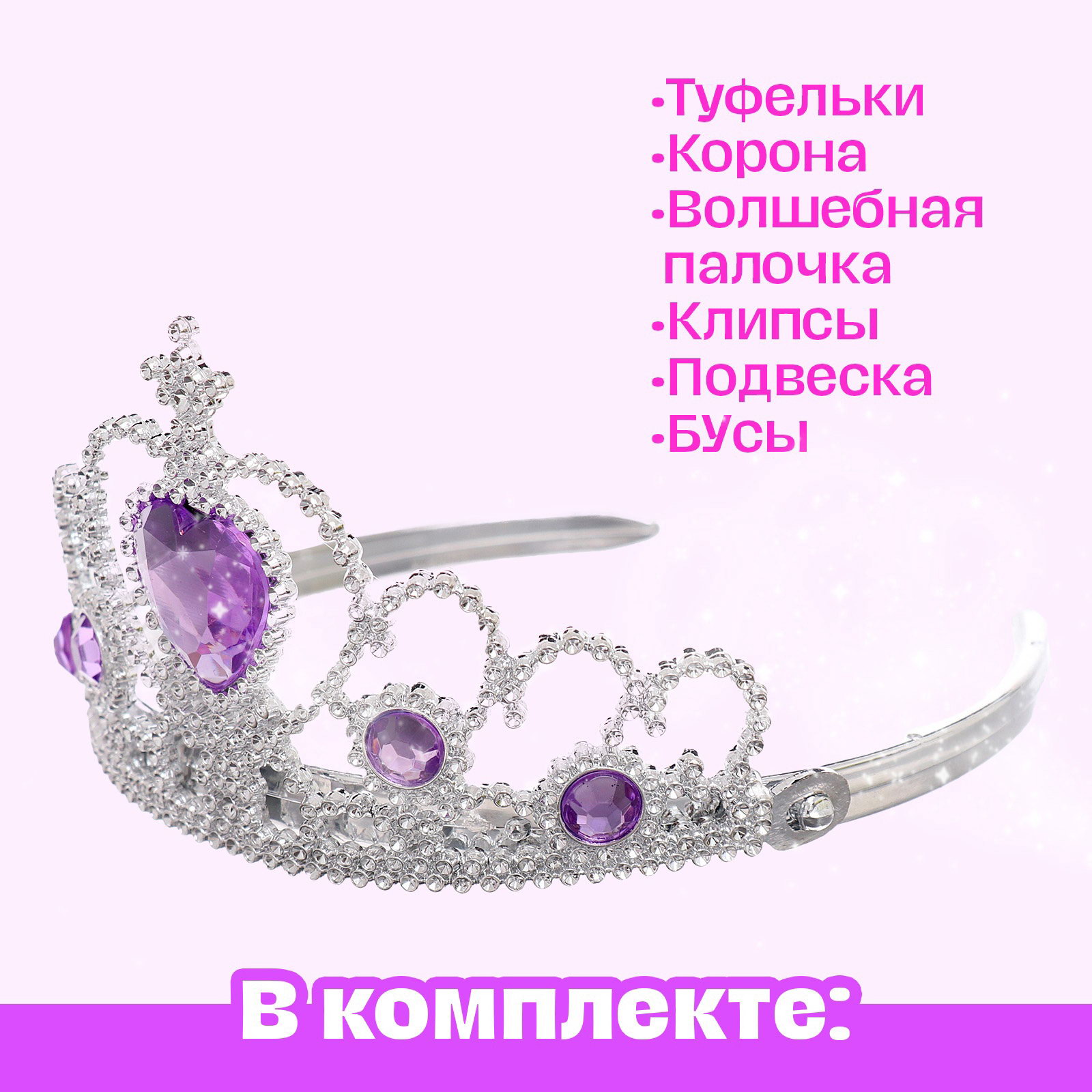 Набор для модницы "Аксессуары принцессы" станет отличным подарком на день рождение, Новый год или любой другой праздник. Комплект можно использовать для тематических вечеринок, карнавалов и фотосессий. Комплектация:
