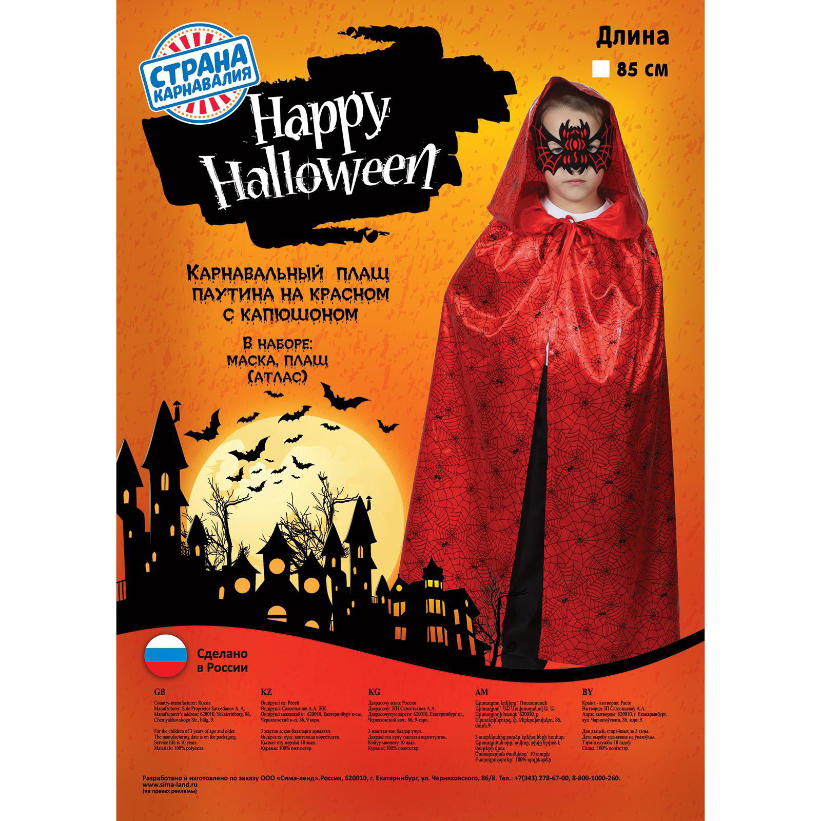 Карнавальный плащ с капюшоном, паутина на красном, атлас, длина 85 см + маска, Страна Карнавалия, Россия