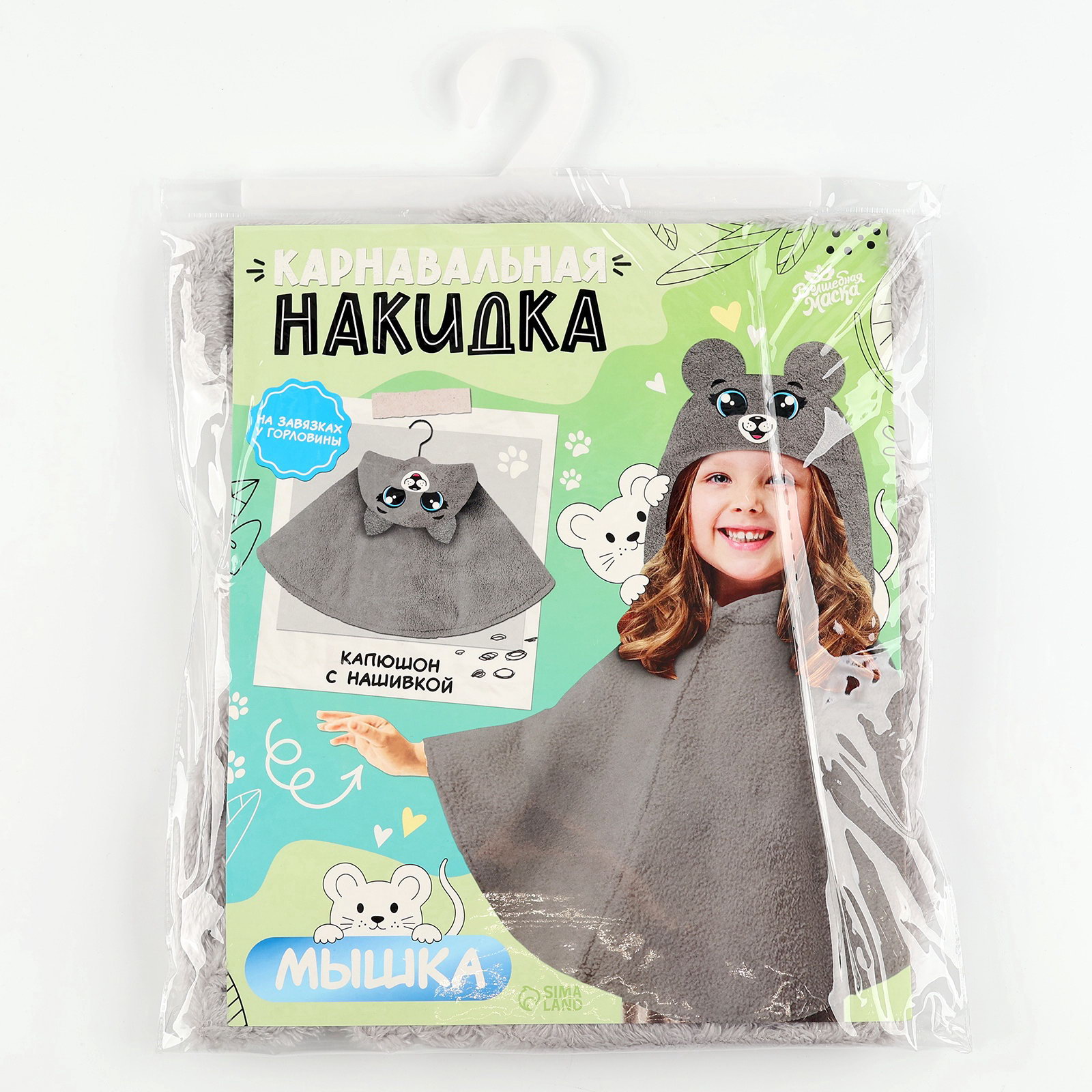 Карнавальная накидка "Мышь", рост 104-128 см, длина с капюшоном 60 см, без капюшона 35 см, серый, 30x25x2 см., Волшебная маска, Китай