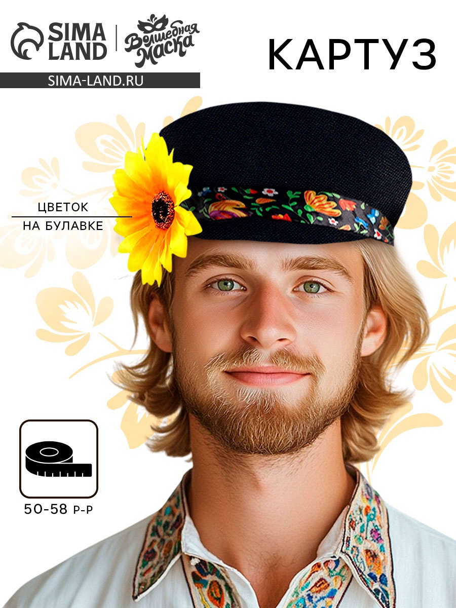 Карнавальный картуз "Иванушка" р-р 50-58, 21x21x2.5 см., Волшебная маска, Китай