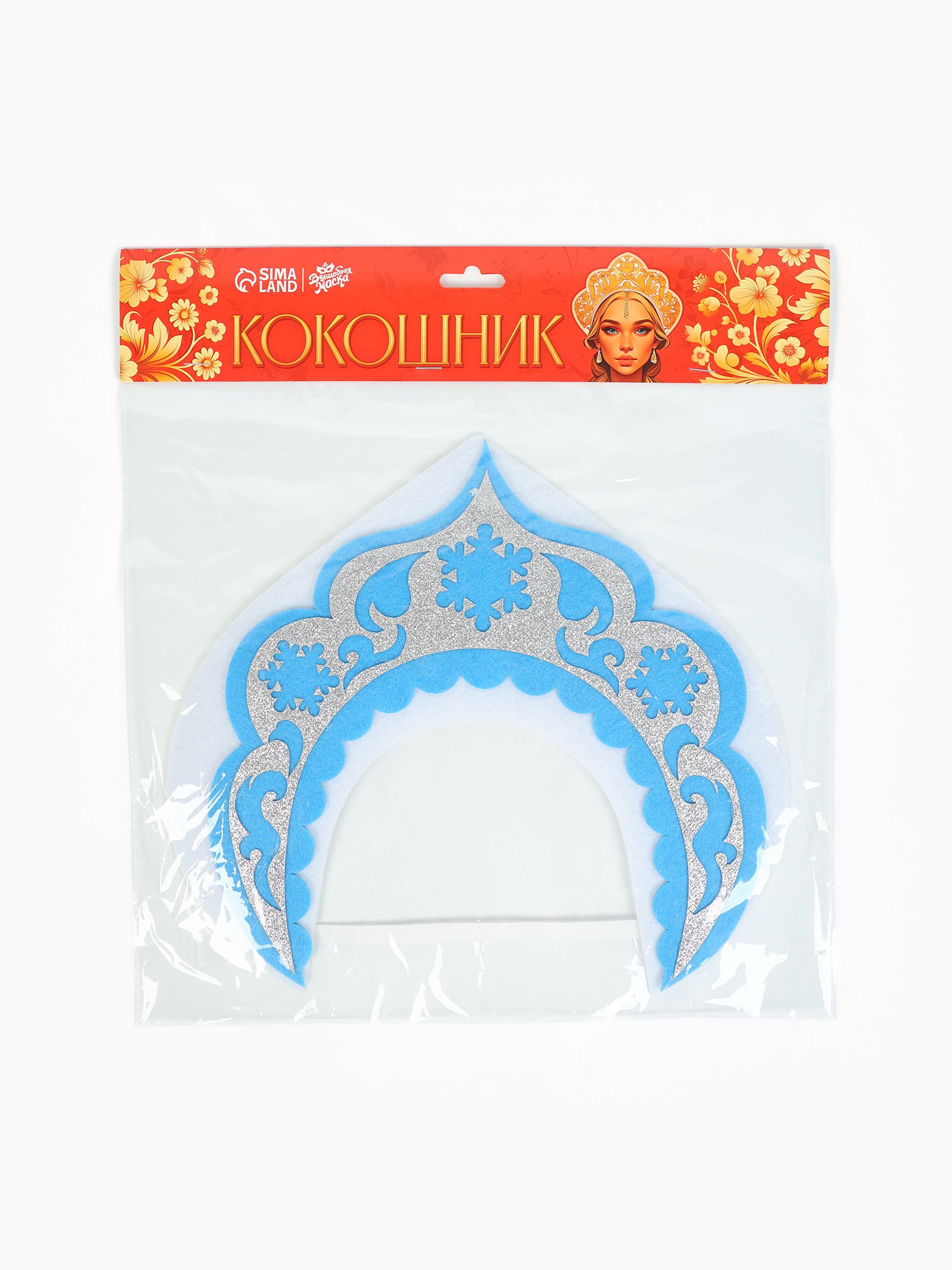 Тематика: Новогодние, Русские народные Персонажи: Русский народный, Снегурочка, Снежная Королева, Царевна Размер упаковки: 30 x 0.5 x 27 см. tnved: 6505009000 Тематика праздника: Новый год Честный знак: Честный знак Цвет: Голубой Возраст: Любой Вид: Кокошники Карнавальный кокошник аксессуар, который поможет создать старинный образ русской красавицы! Взрослым он пригодится для карнавального мероприятия, а дети смогут надеть его на утренник или любое другое событие. Также кокошник это необычный и интересный аксессуар для фотосессии! Особенности