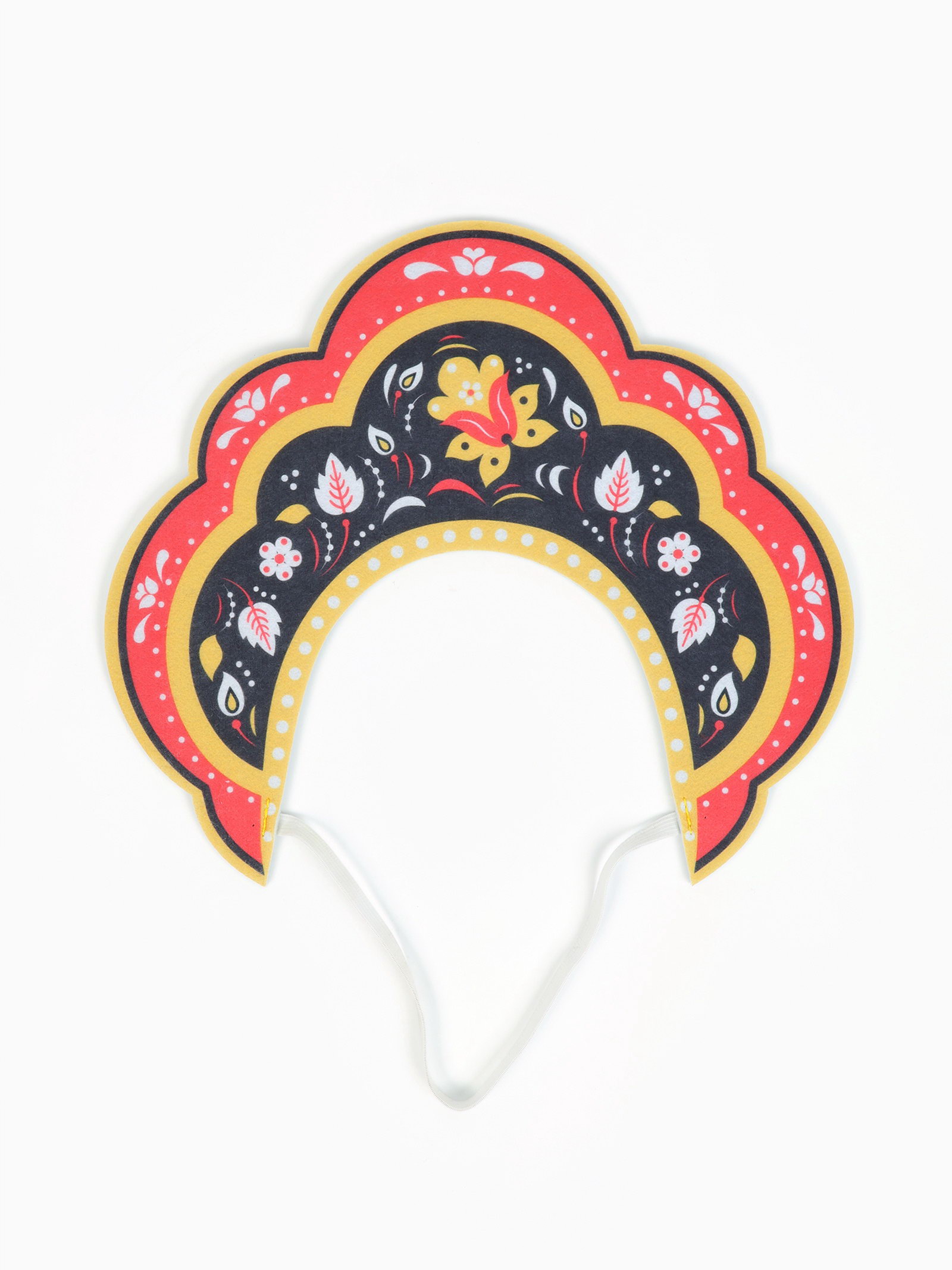 Цвет: Жёлтый, Красный, Чёрный Размер упаковки: 30 x 0.5 x 27 см. tnved: 6505009000 Персонажи: Русский народный Тематика праздника: Универсальная тематика Честный знак: Да Возраст: Любой Вид: Кокошники Тематика: Русские народные Карнавальный кокошник аксессуар, который поможет создать старинный образ русской красавицы! Взрослым он пригодится для карнавального мероприятия, а дети смогут надеть его на утренник или любое другое событие. Также кокошник это необычный и интересный аксессуар для фотосессии! Особенности