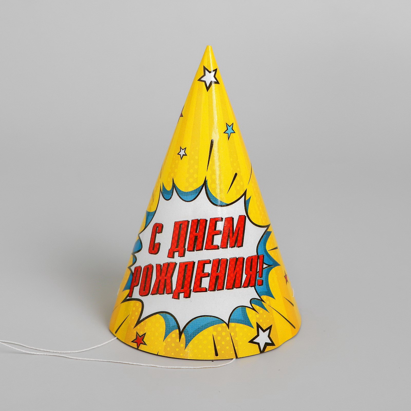 Колпак праздничный бумажный "С днём рождения", взрыв, Страна Карнавалия, Россия