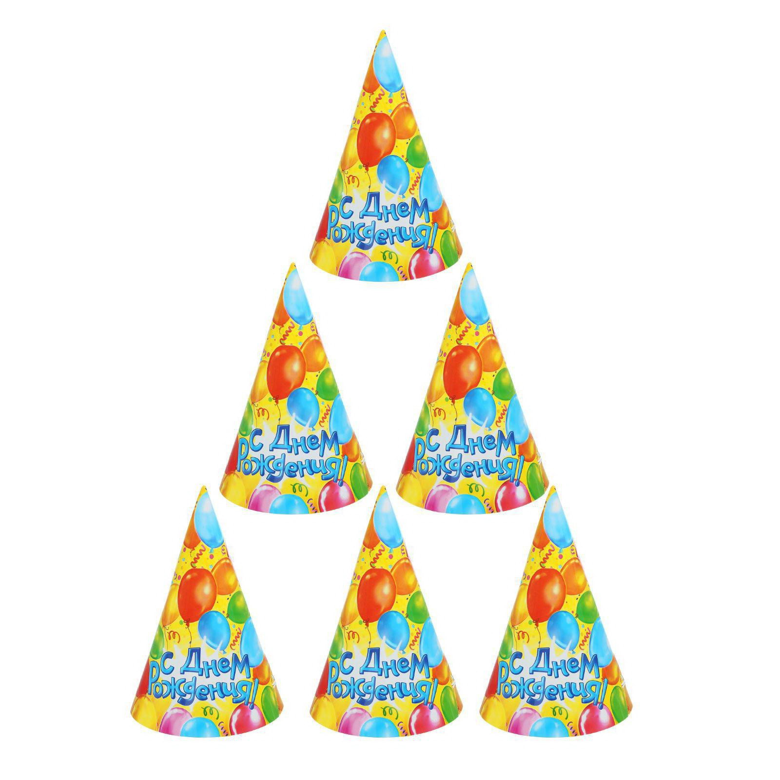 Колпак праздничный бумажный "С днём рождения", шары, 16 см, 10.5x10.5x16 см., Страна Карнавалия, Россия