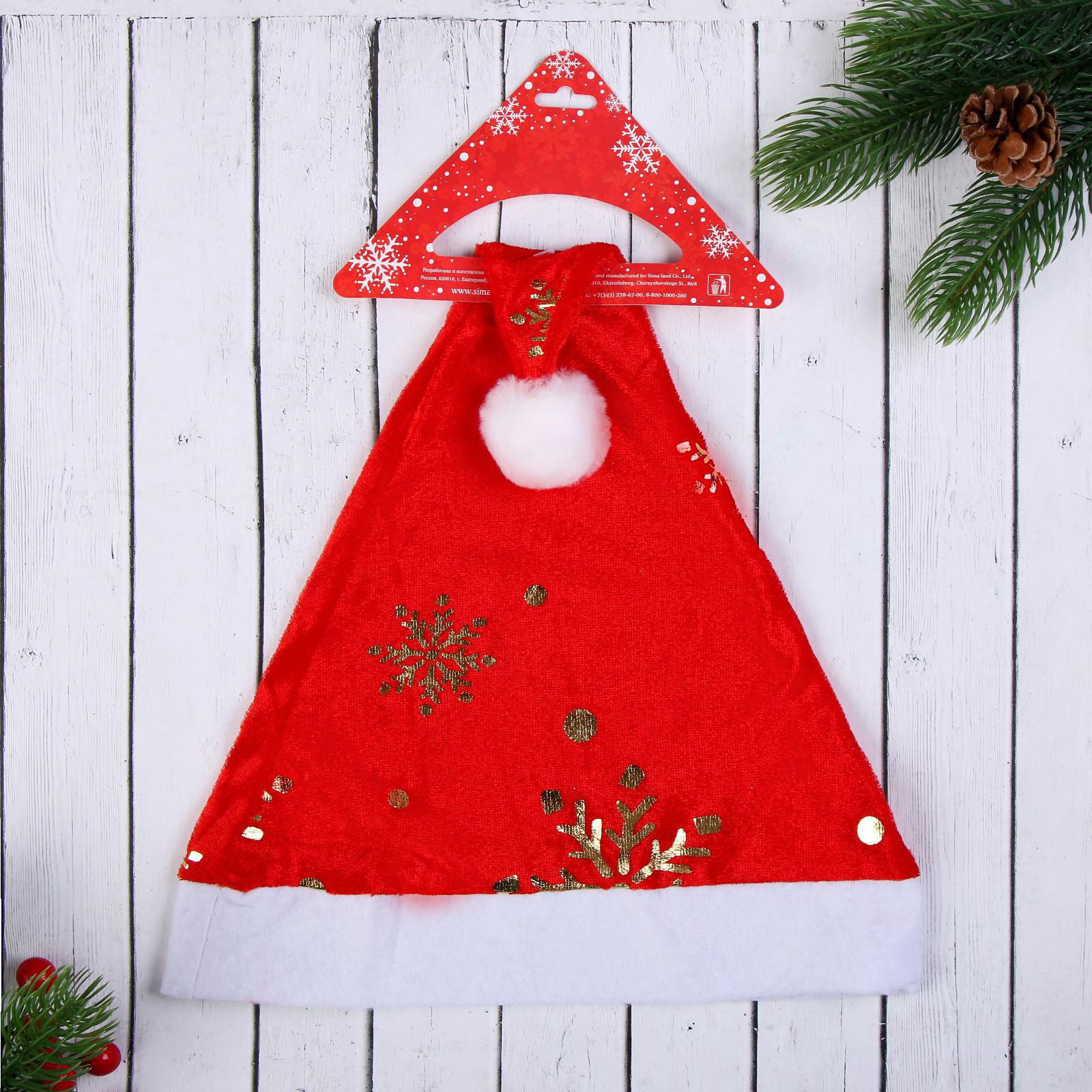 Колпак новогодний "Сияющие снежинки" 28x36 см, красный, 28x36 см., Зимнее волшебство, Китай