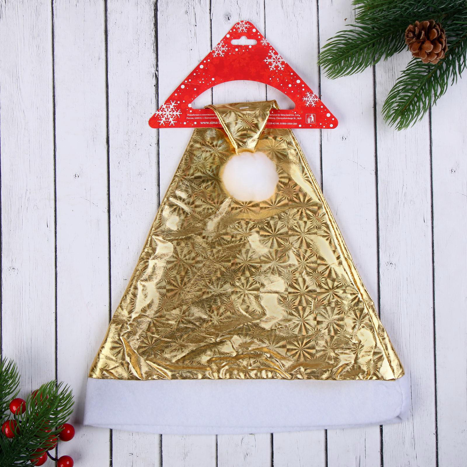 Колпак новогодний "Солнечная голография" 28x35 см, золото, 28x35 см., Зимнее волшебство, Китай