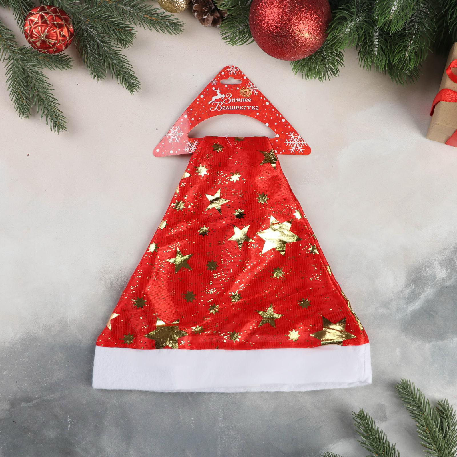 Колпак новогодний "Звёзды", 40x27 см, красный, 27x40 см., Зимнее волшебство, Китай