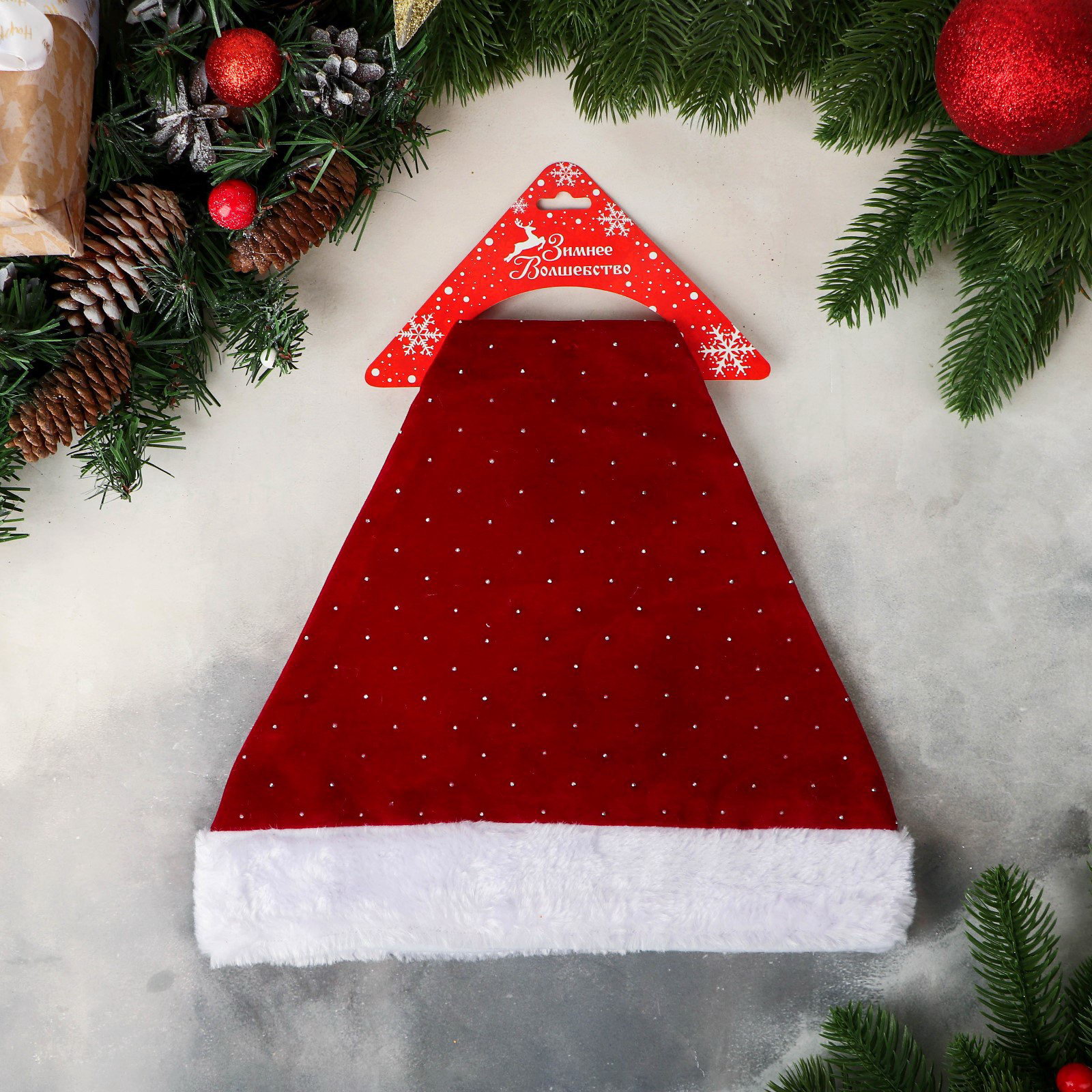 Колпак новогодний "Блеск" 27x37 см, красный, 27x37 см., Зимнее волшебство, Китай