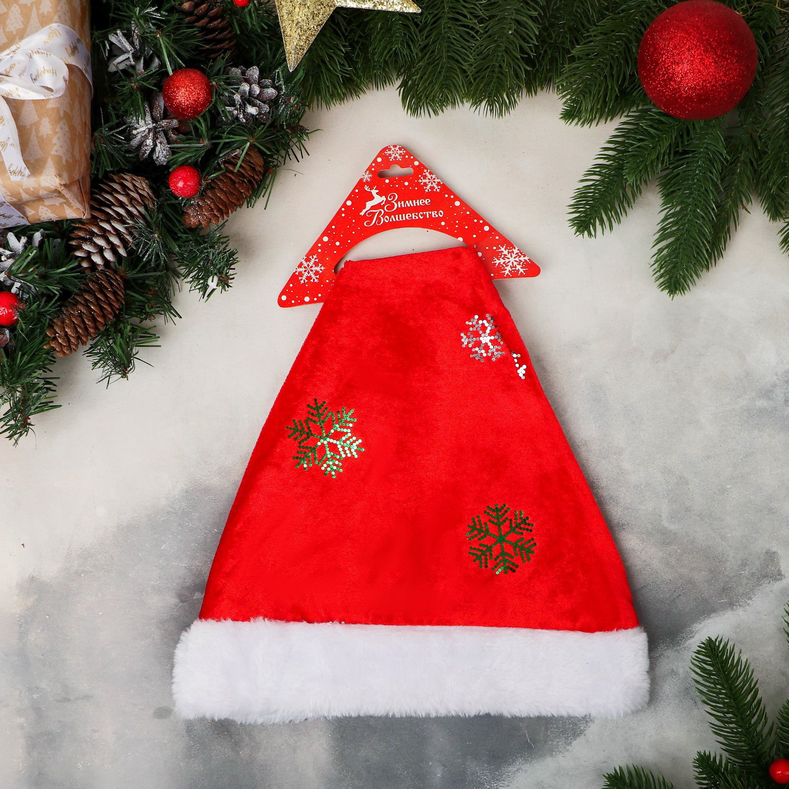 Колпак новогодний "Снежинка" 26x35 см, красный, 26x35 см., Зимнее волшебство, Китай