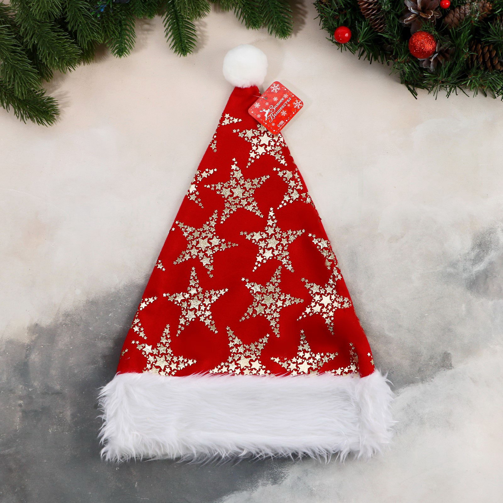 Колпак новогодний "Феерия" звёзды, 28x40 см, красный, 28x40 см., Зимнее волшебство, Китай