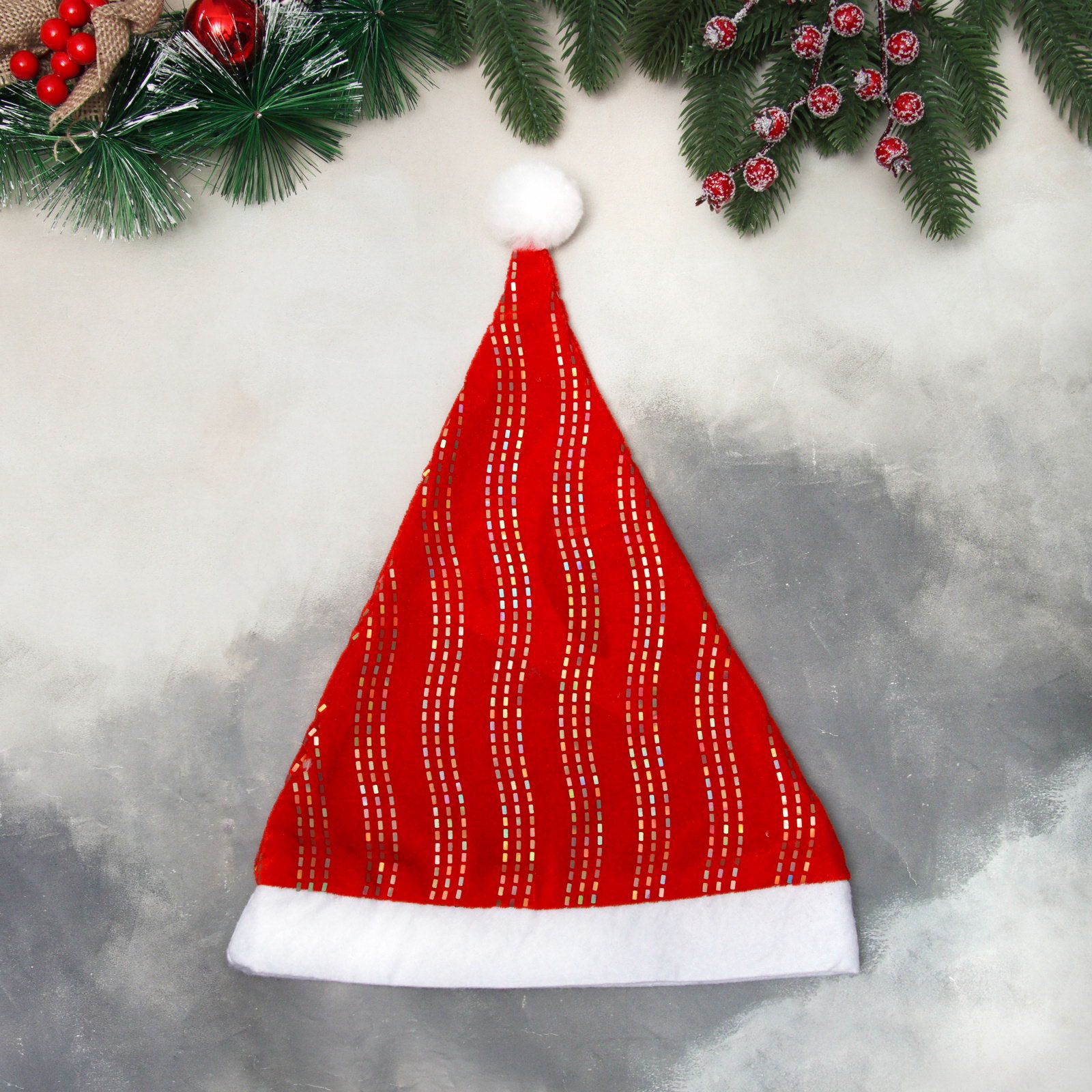 Колпак новогодний "Праздничная волна" 28x37 см, красный, 28x37 см., Зимнее волшебство, Китай
