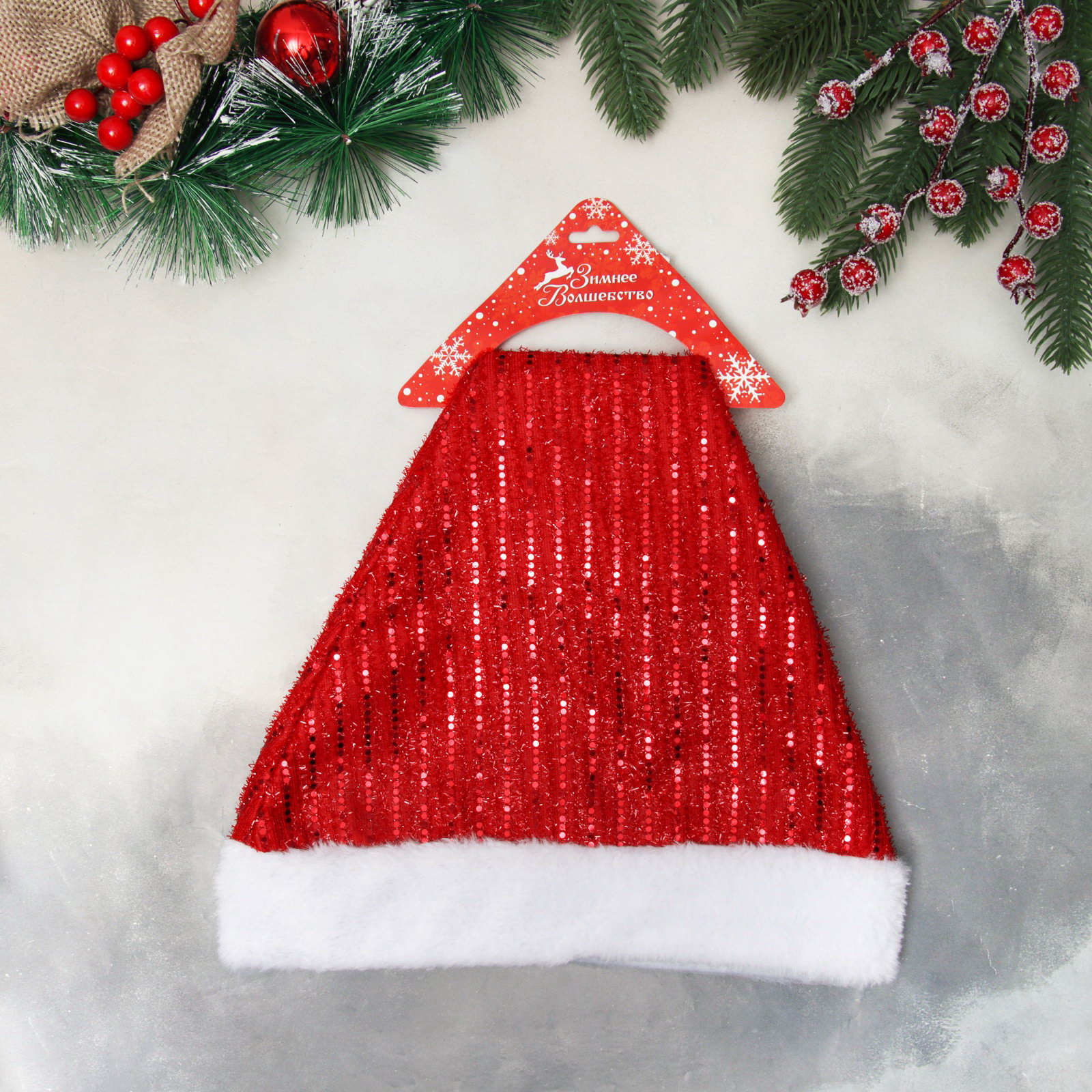 Колпак новогодний "Мерцающие полосы" 30x36 см, красный, 30x36 см., Зимнее волшебство, Китай