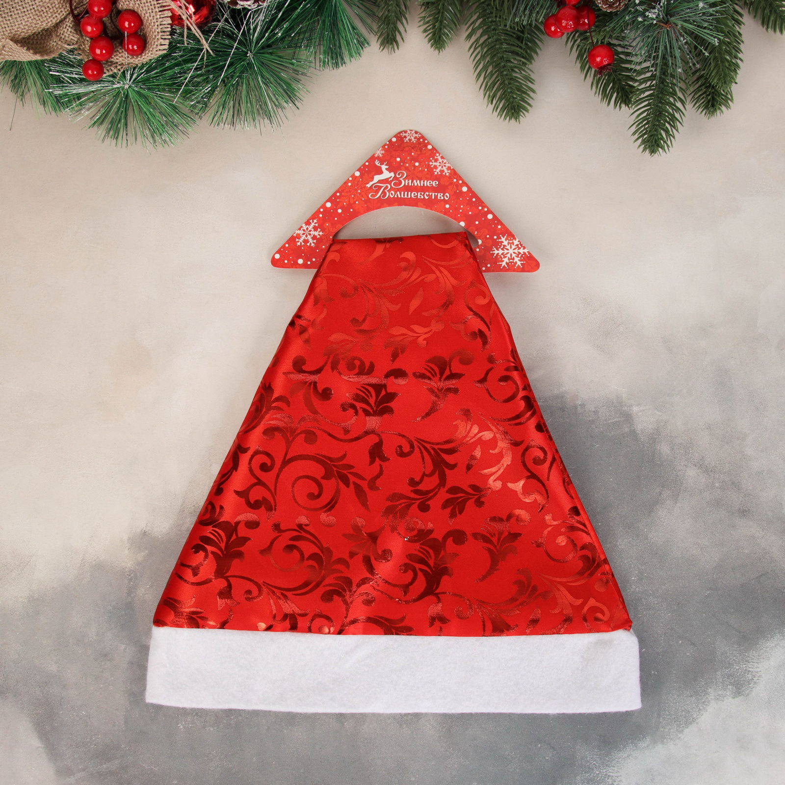 Колпак новогодний "Морозный узор" 28x36 см, красный, 28x36 см., Зимнее волшебство, Китай